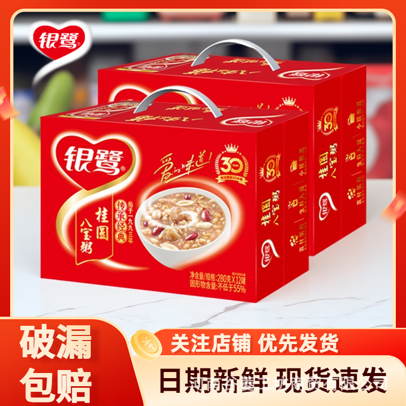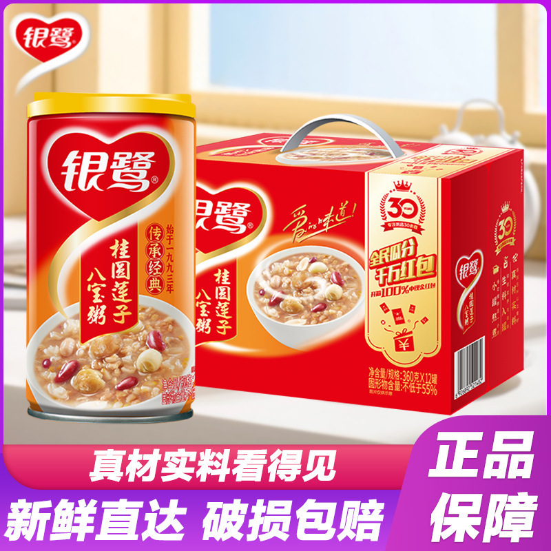 1月新货 银鹭桂圆莲子八宝粥360g*12罐整箱早餐营养杂粮速食粥