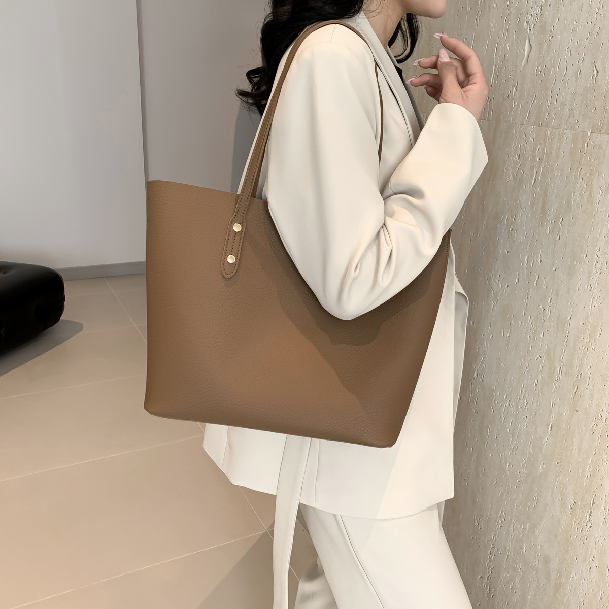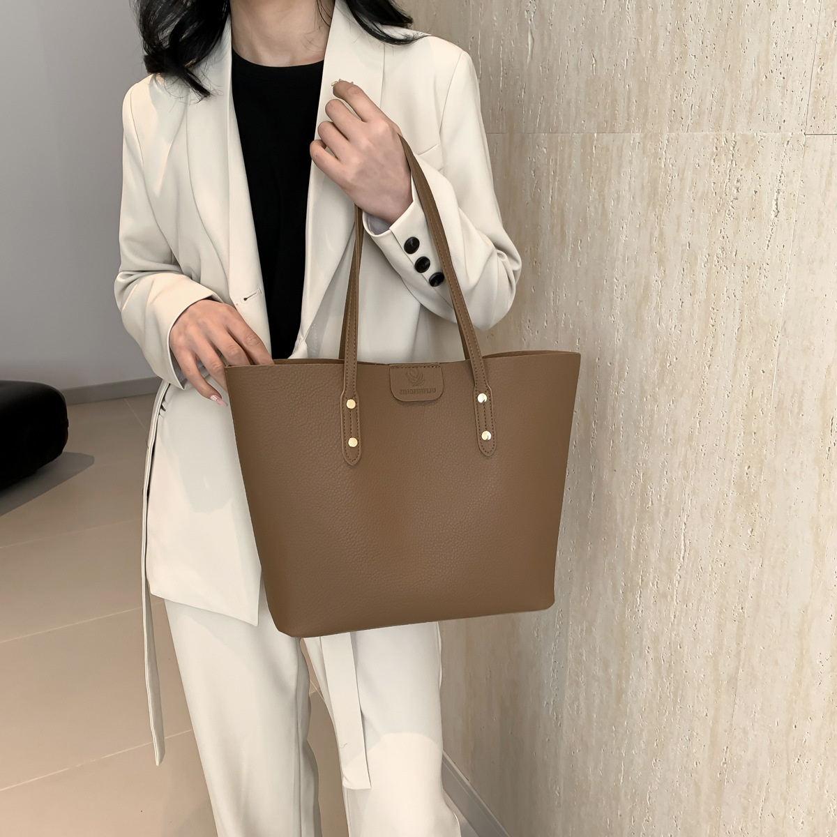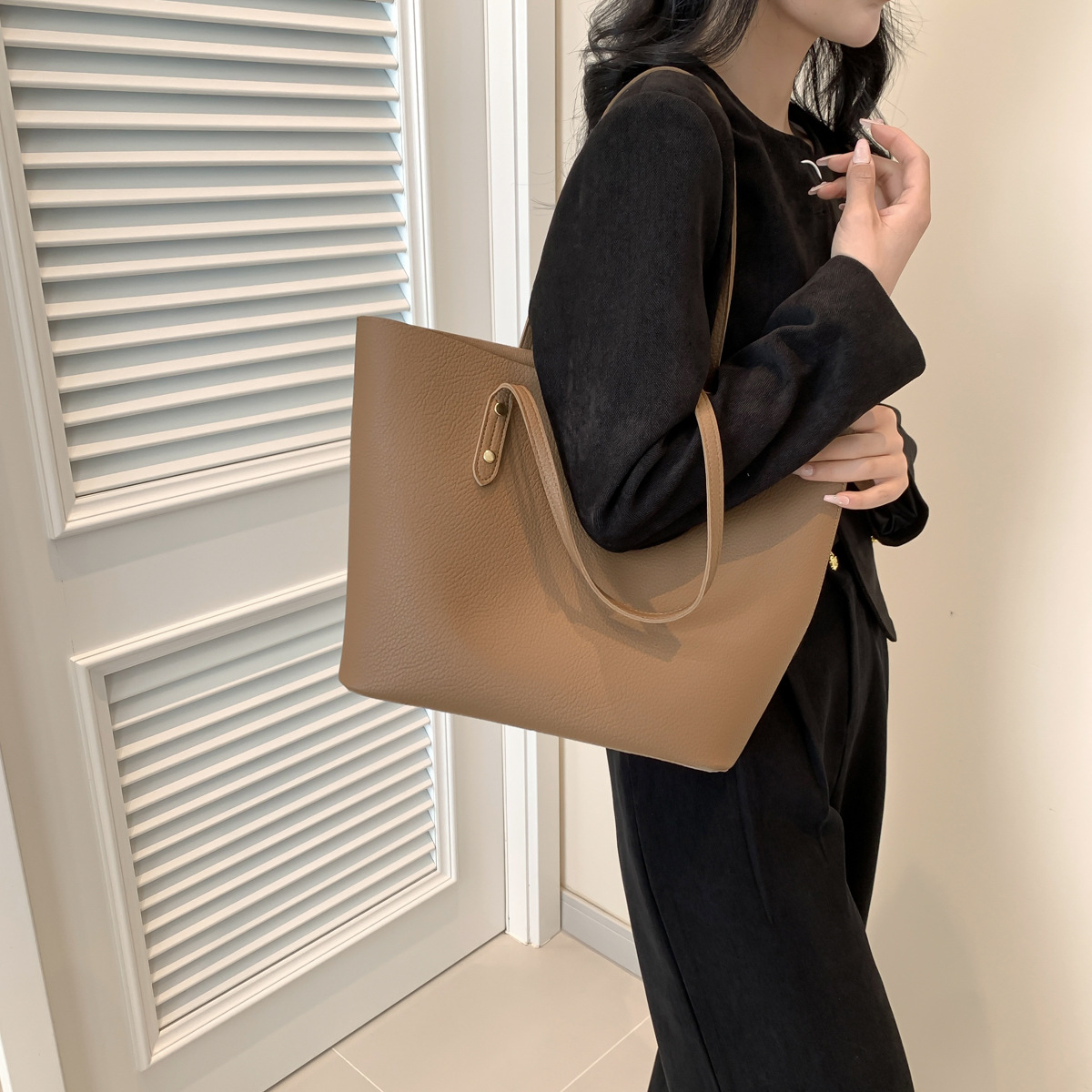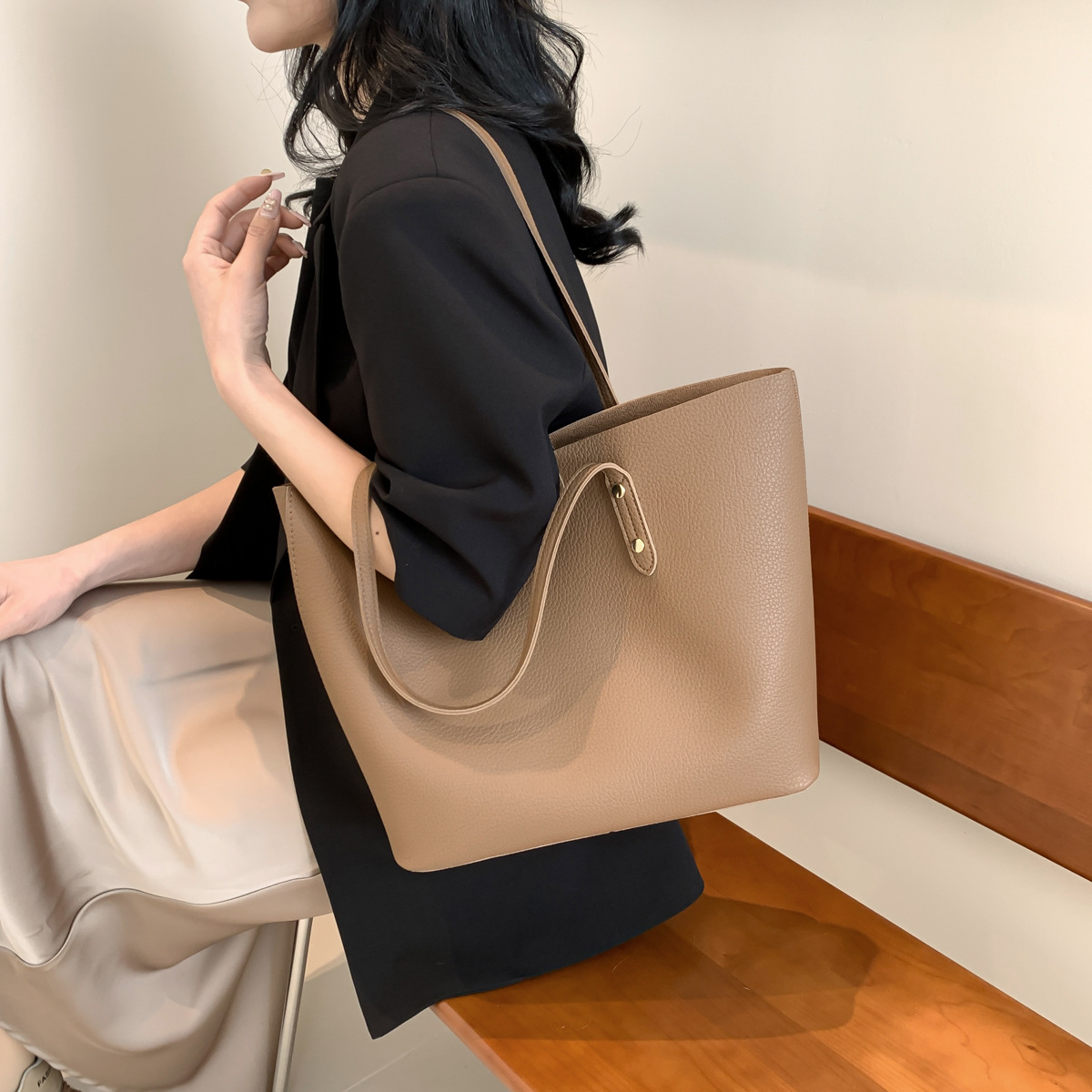 高級感のある大容量ハンドバッグ、新作おしゃれで万能なショルダーバッグ、レディースバッグ、インスタ映えするシンプル無地トートバッグ