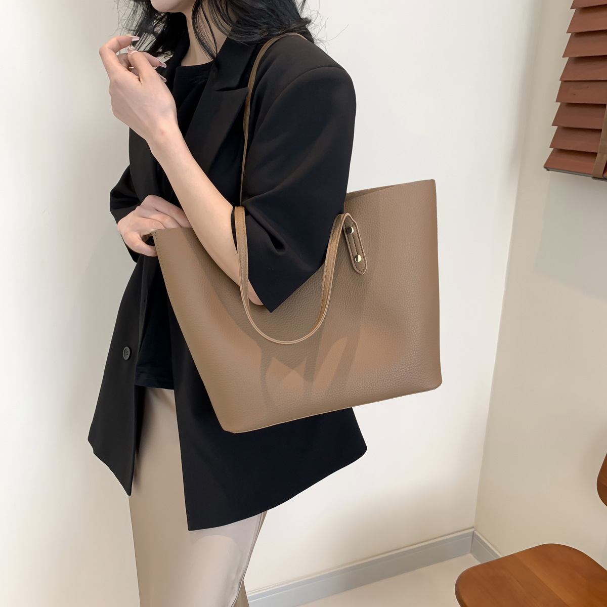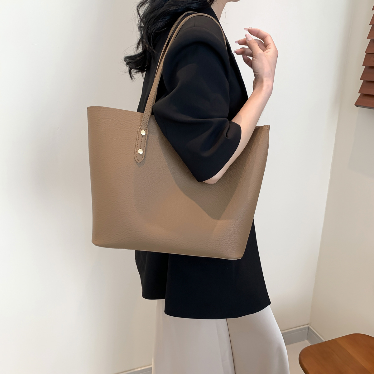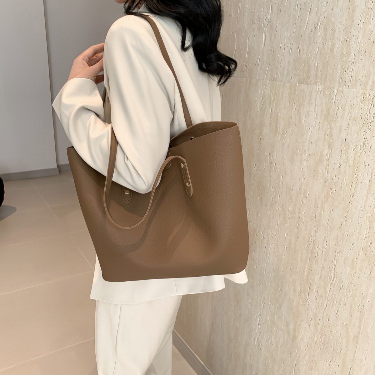 高級感のある大容量ハンドバッグ、新作おしゃれで万能なショルダーバッグ、レディースバッグ、インスタ映えするシンプル無地トートバッグ