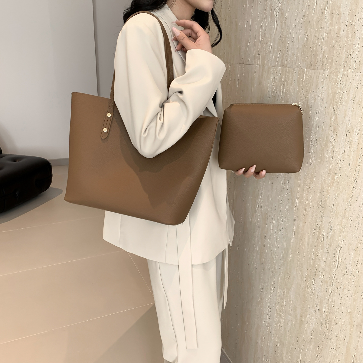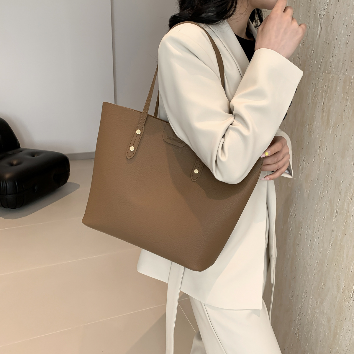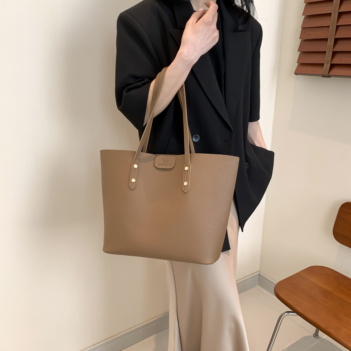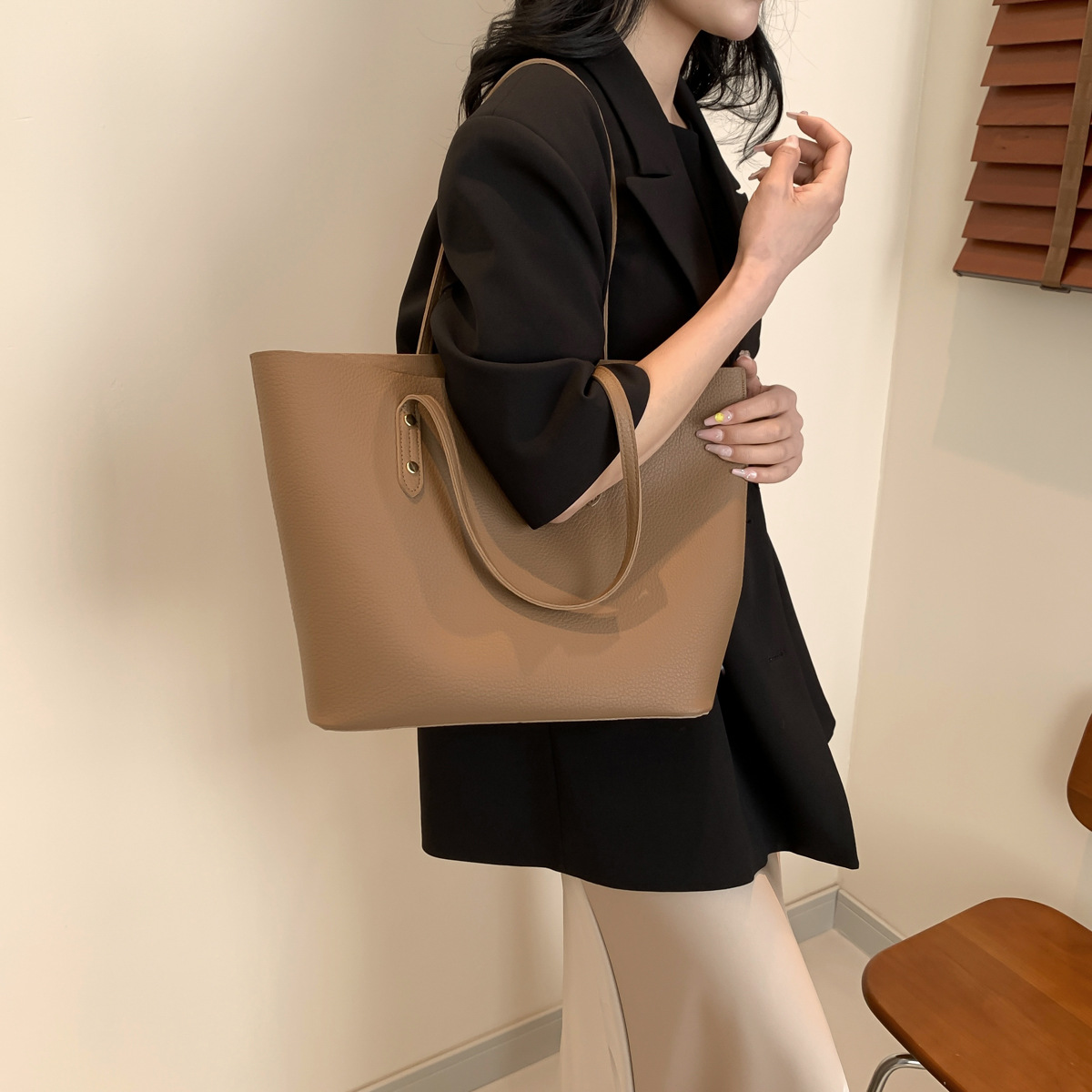 高級感のある大容量ハンドバッグ、新作おしゃれで万能なショルダーバッグ、レディースバッグ、インスタ映えするシンプル無地トートバッグ