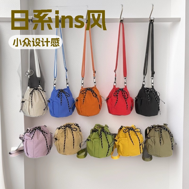 日系ins风小众设计感抽绳水桶包通勤百搭斜挎包 户外运动休闲包包