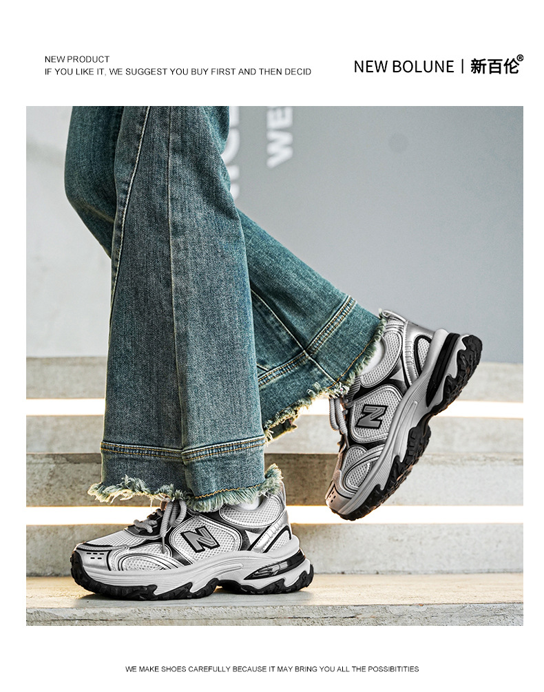新百倫男靴女性靴運動カジュアルシューズ厚い底カップルのお父さん靴2025春夏新作