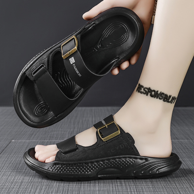 メンズスリッパ 2025 夏の新トレンドアウターレザー厚底衝撃吸収滑り止めハイエンドビーチメンズスリッパ