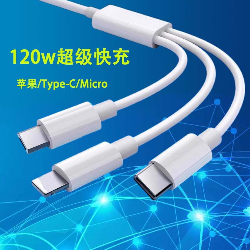 白色一モップ三66W超高速充電ケーブル三合一車載携帯電話usb適用アップルアンドロイドtype