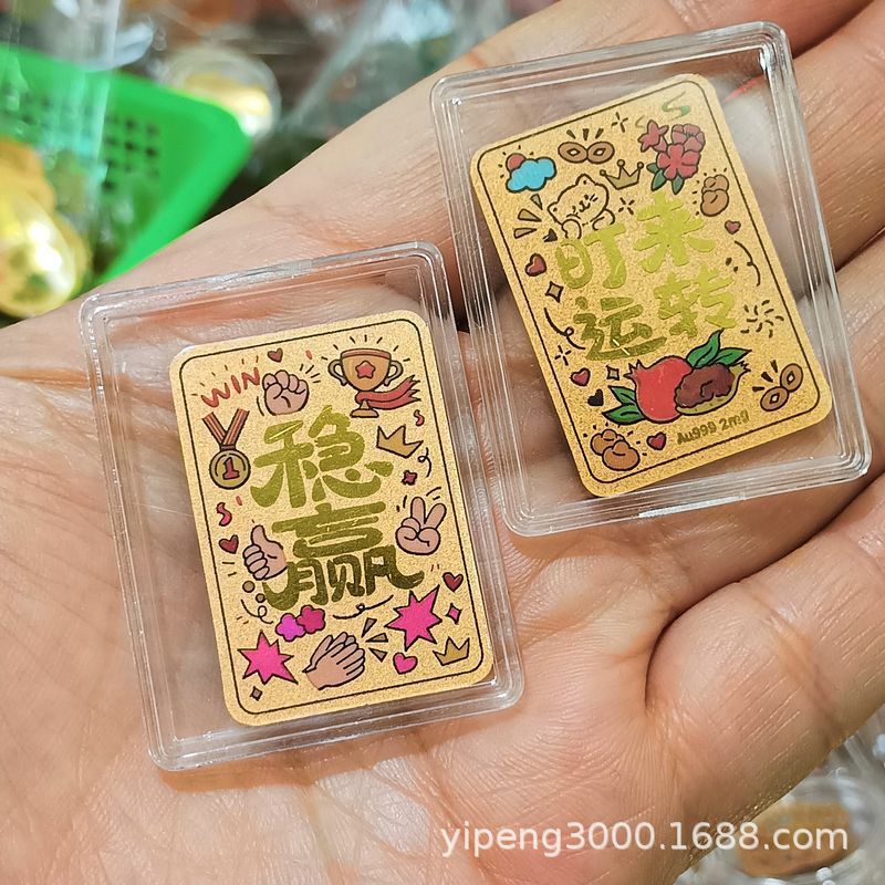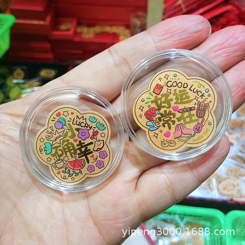 純金 999 ラブブ labubu 携帯電話ステッカー 2mg 漫画かわいい新年幸運カラーゴールドフレーク純金卸売