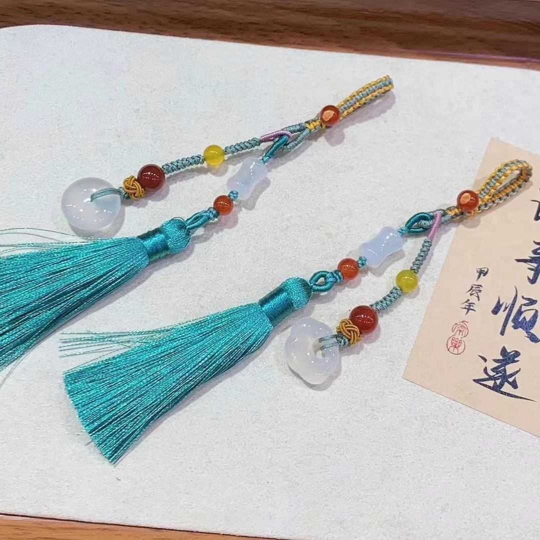 タッセルカルセドニー車のキーホルダーストラップ手作り diy 織瑪瑙ペンダントイベントギフトペンダント