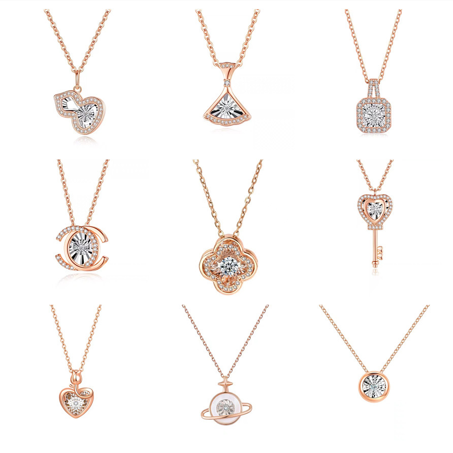 チタン鋼象嵌本物のダイヤモンドネックレス、スマートで絶妙な日本と韓国の四つ葉のクローバー女性の首鎖骨チェーンローズゴールドペンダントライブブロードキャストホットスタイル