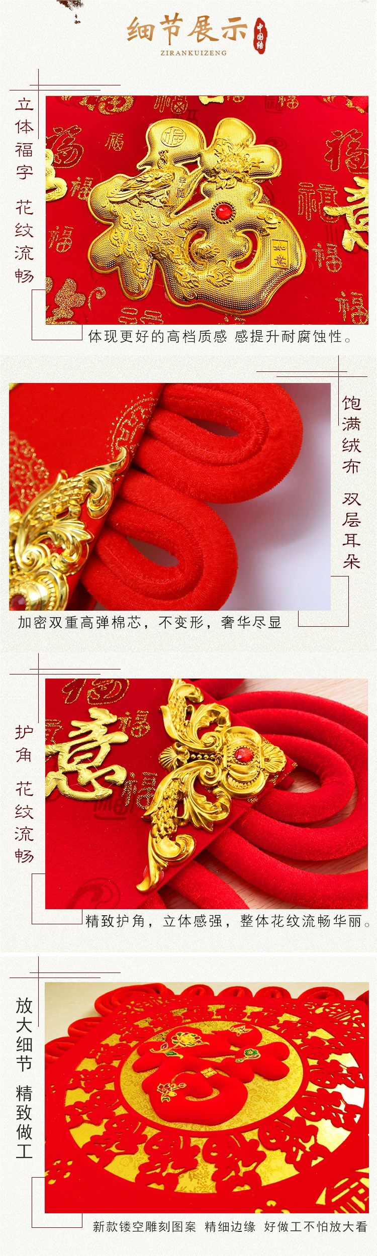 2025年の新型逸品中国結四字対聯は春節のお祝い用品を掛けて粉を撒きます。
