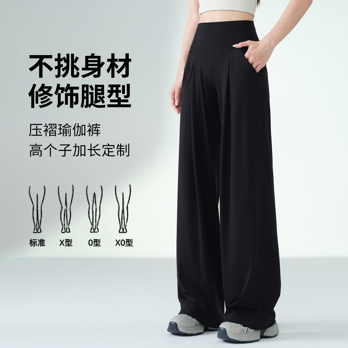 175高个子宽松瑜伽裤外穿秋新款抽绳垂感阔腿裤高腰运动直筒裤女