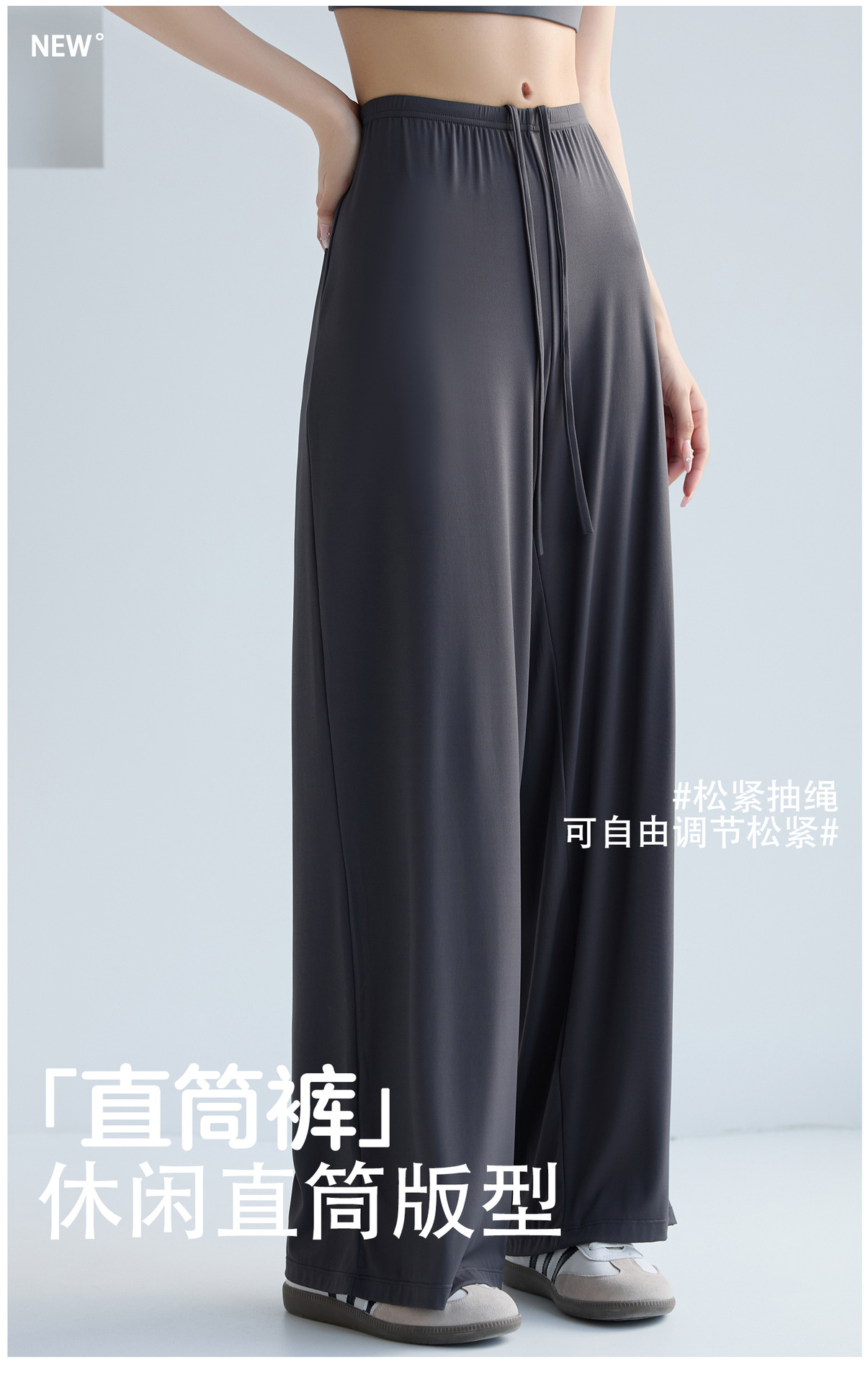 ゆったりストレートレッグスポーツパンツ、スリム、ハイウエスト、ランニングトレーニング、夏通気性巾着ワイドレッグヨガパンツ、薄手、新品