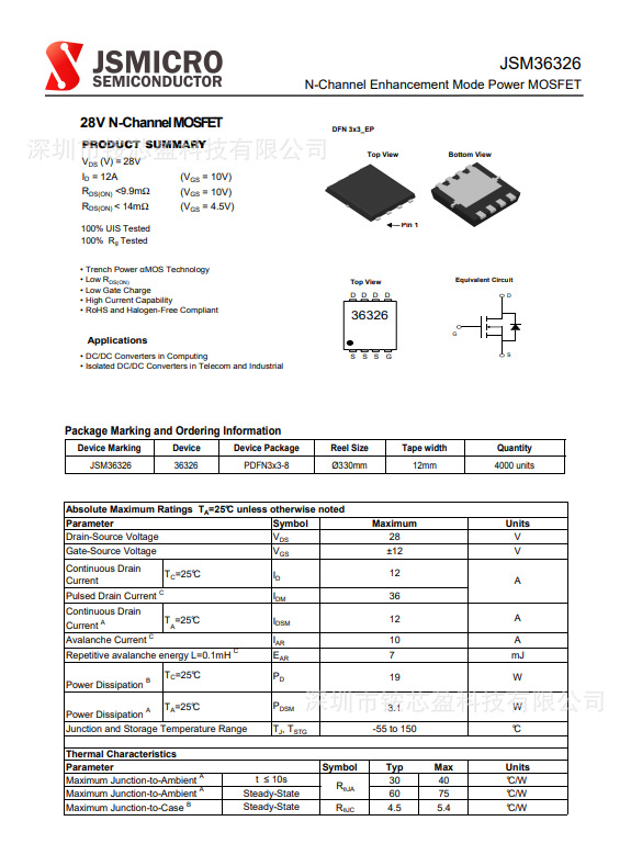 JSM36326 DFN-8(3.3x3.3) NチャンネルMOS管電界効果トランジスタNCEフルシリーズIC