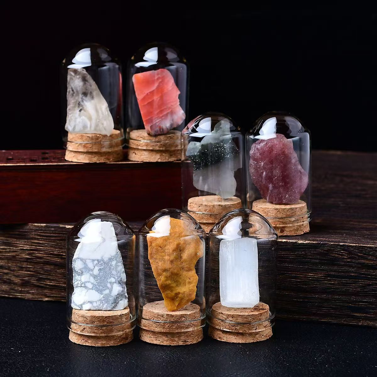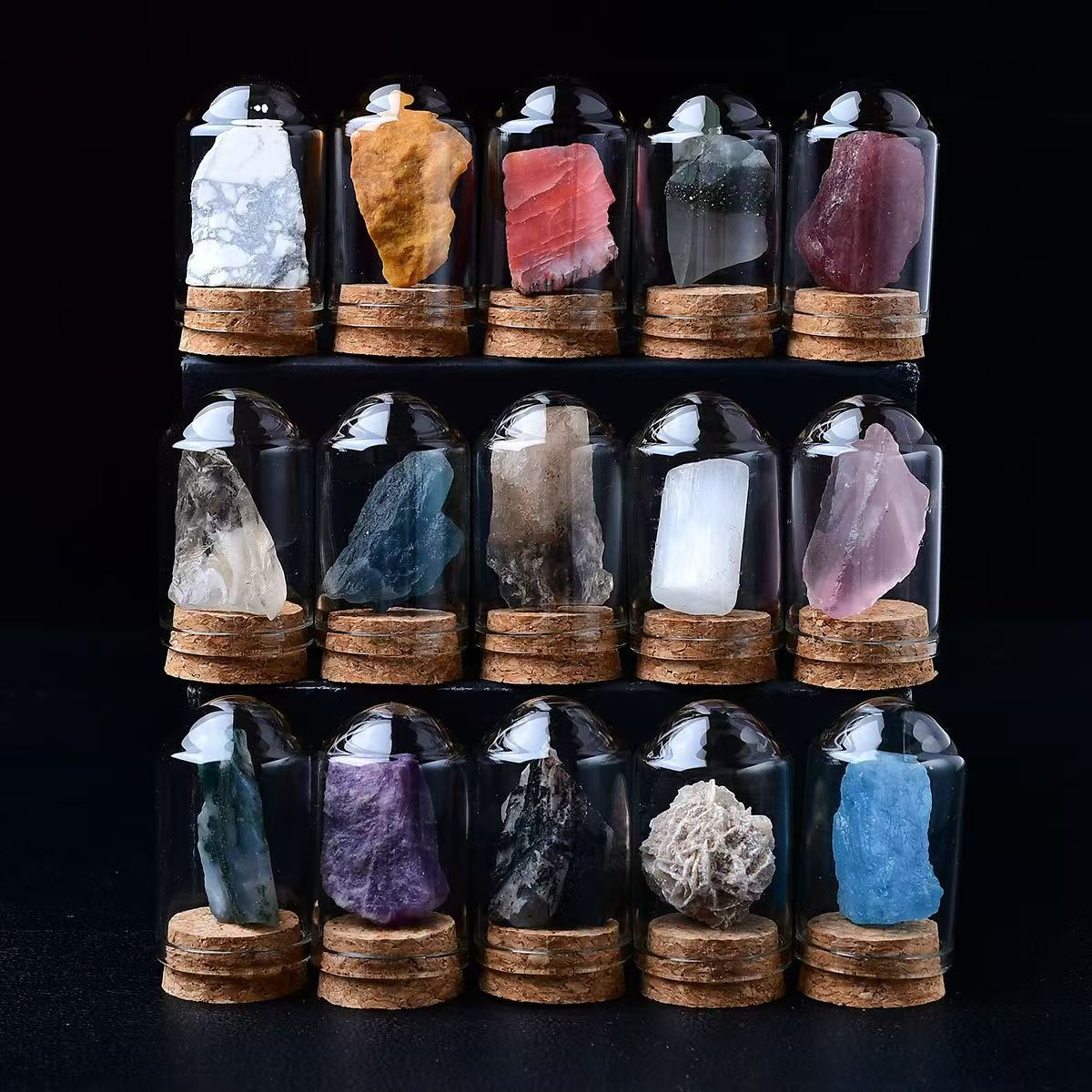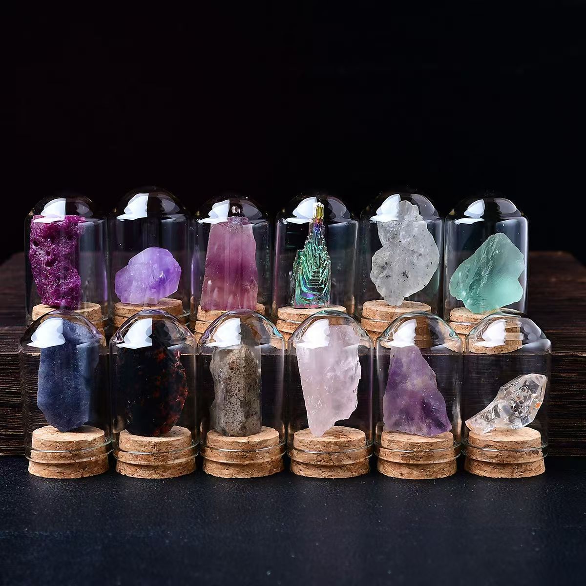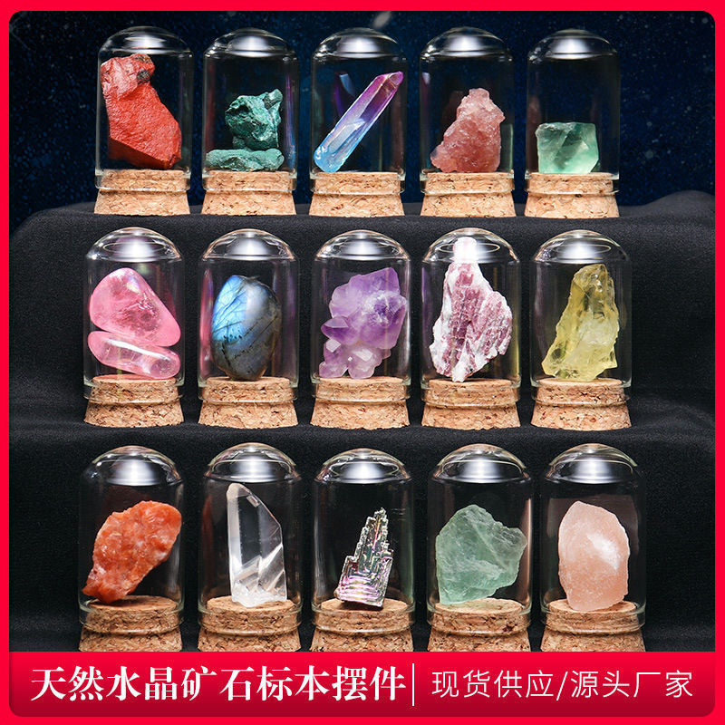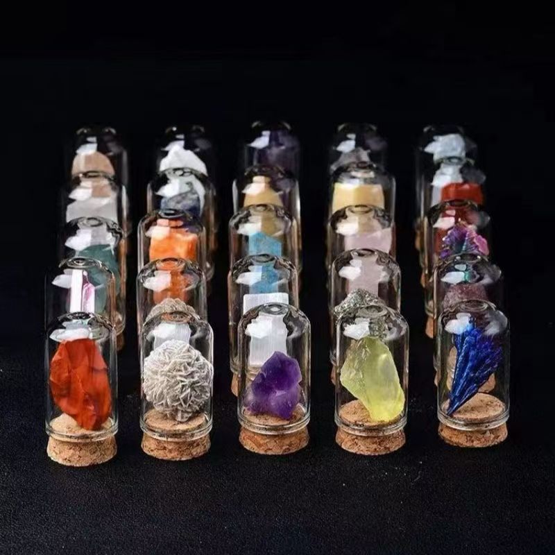 天然水晶原石瓶入りマイクロワールド鉱物標本、願い瓶、鉱石原石、カラー宝石、メーカー卸売