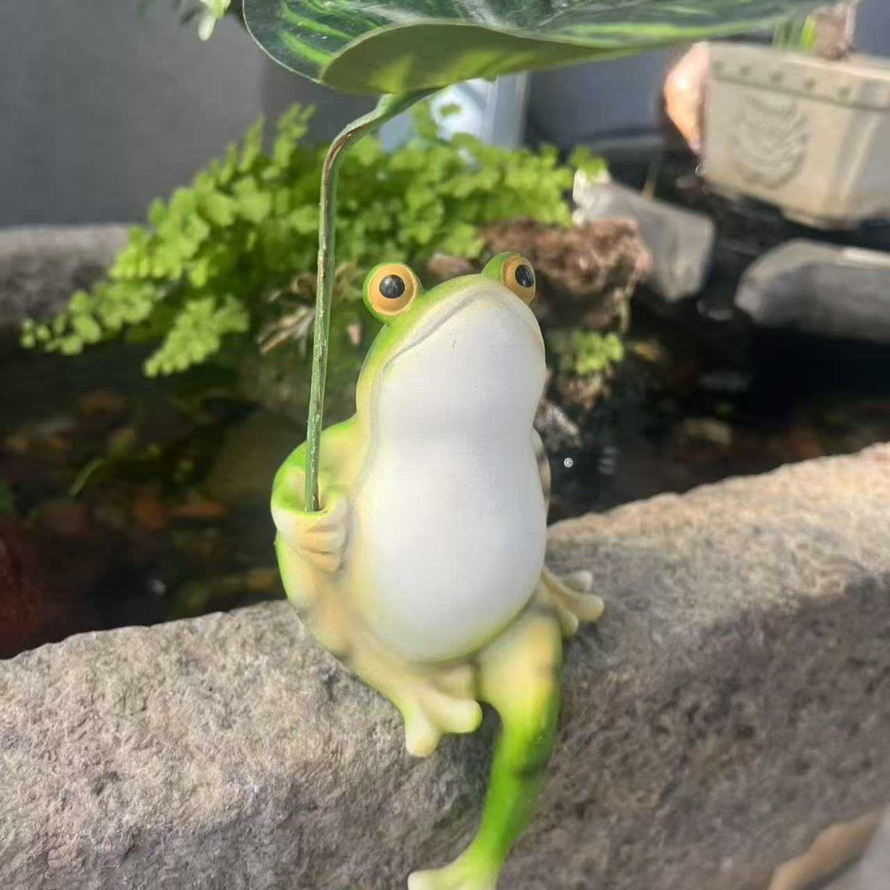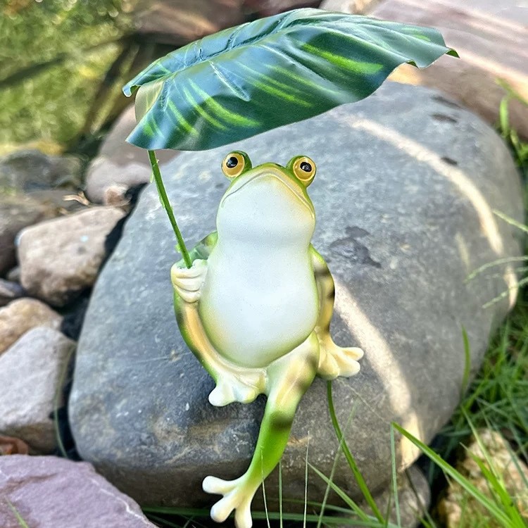 クロスボーダーホットセールかわいいカエルが葉っぱを取る傘春と夏の樹脂装飾品中庭ガーデンスタディリビングルーム装飾
