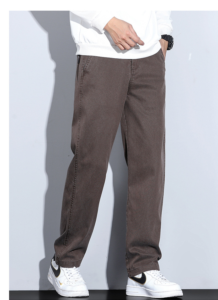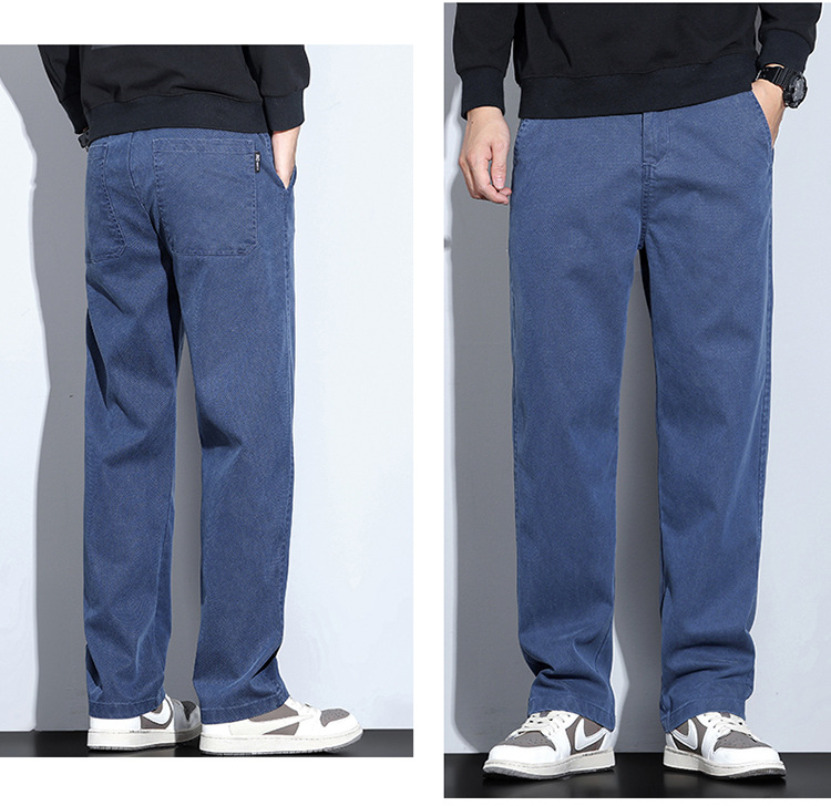 ジーンズメンズ春外国貿易厚く暖かいハイエンドルーズストレートパンツスリムフィットストレッチ多用途パンツ 2287