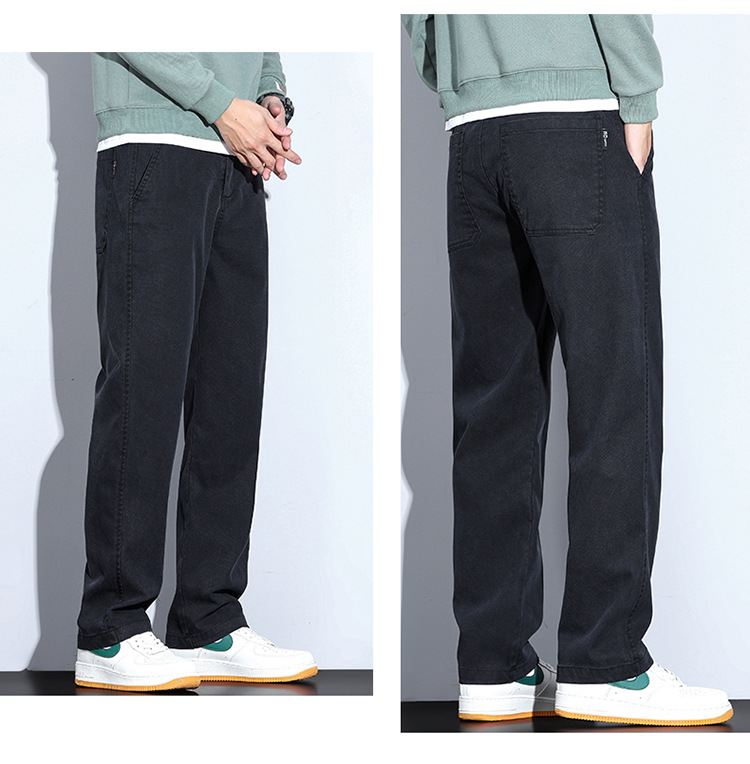 男性用サマーテンセルジーンズ、防シワ、伸縮性、ルーズ、ストレート、トレンディなワイドレッグ、カジュアル、多用途、男性用薄手パンツ