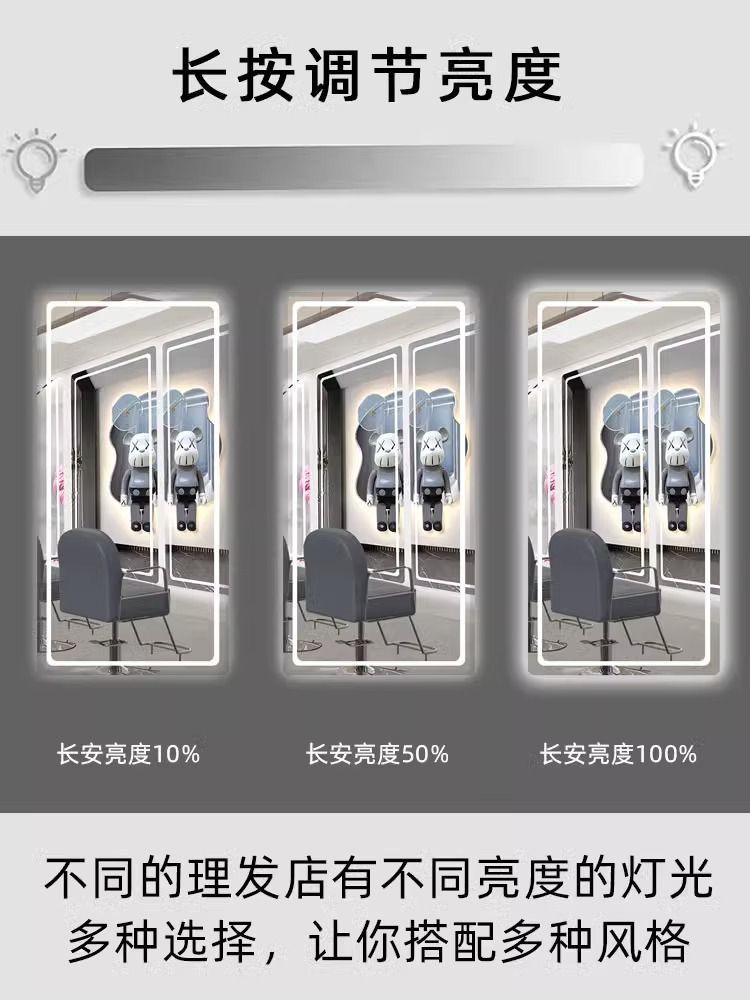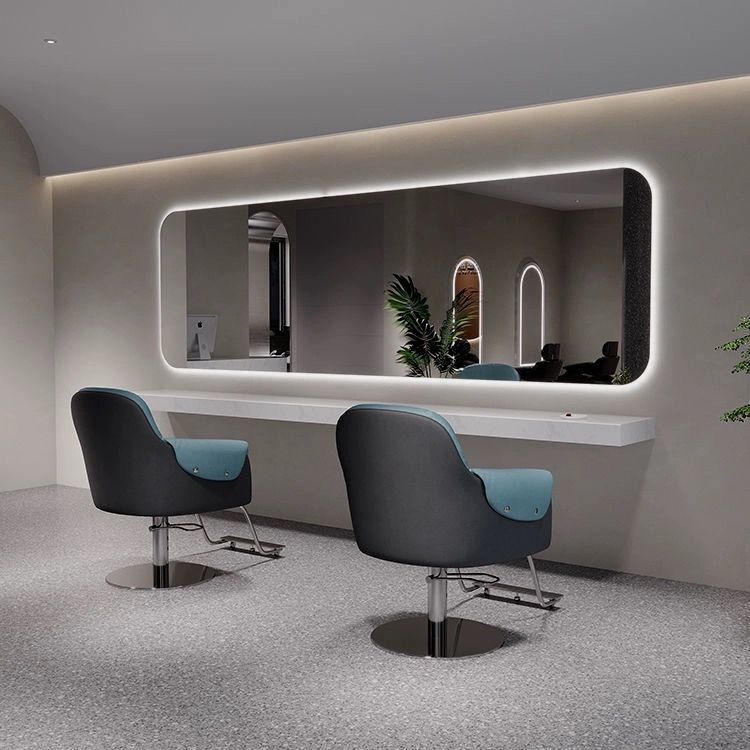 理髪店スマートミラー、理髪店ミラー、バスルームライトなし、理髪店ロングワークベンチ、ライトトレンディモデル