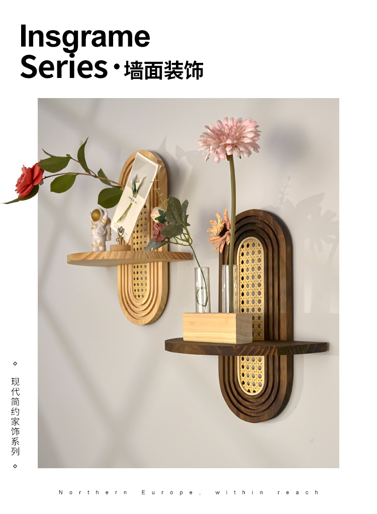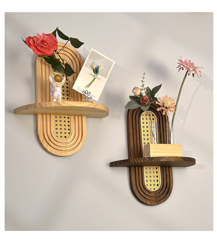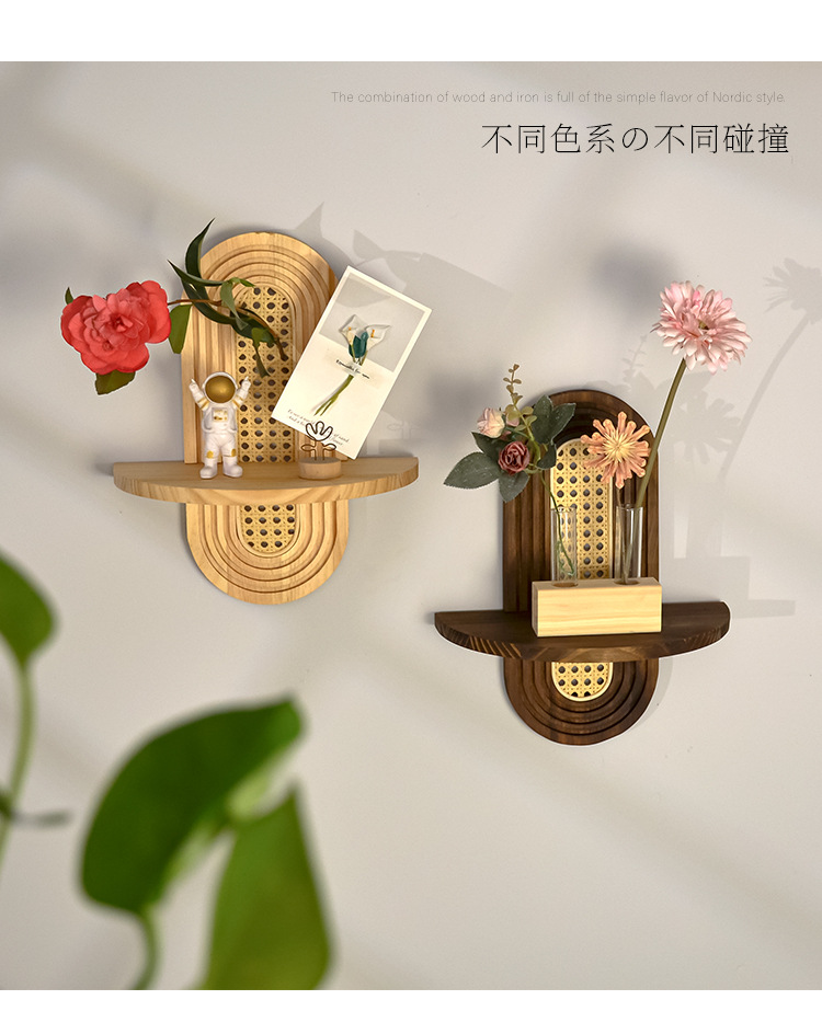 Wenpai 無垢材の壁の装飾棚壁緑植物壁掛けフラワーラック B&B リビングルームの背景の壁の装飾