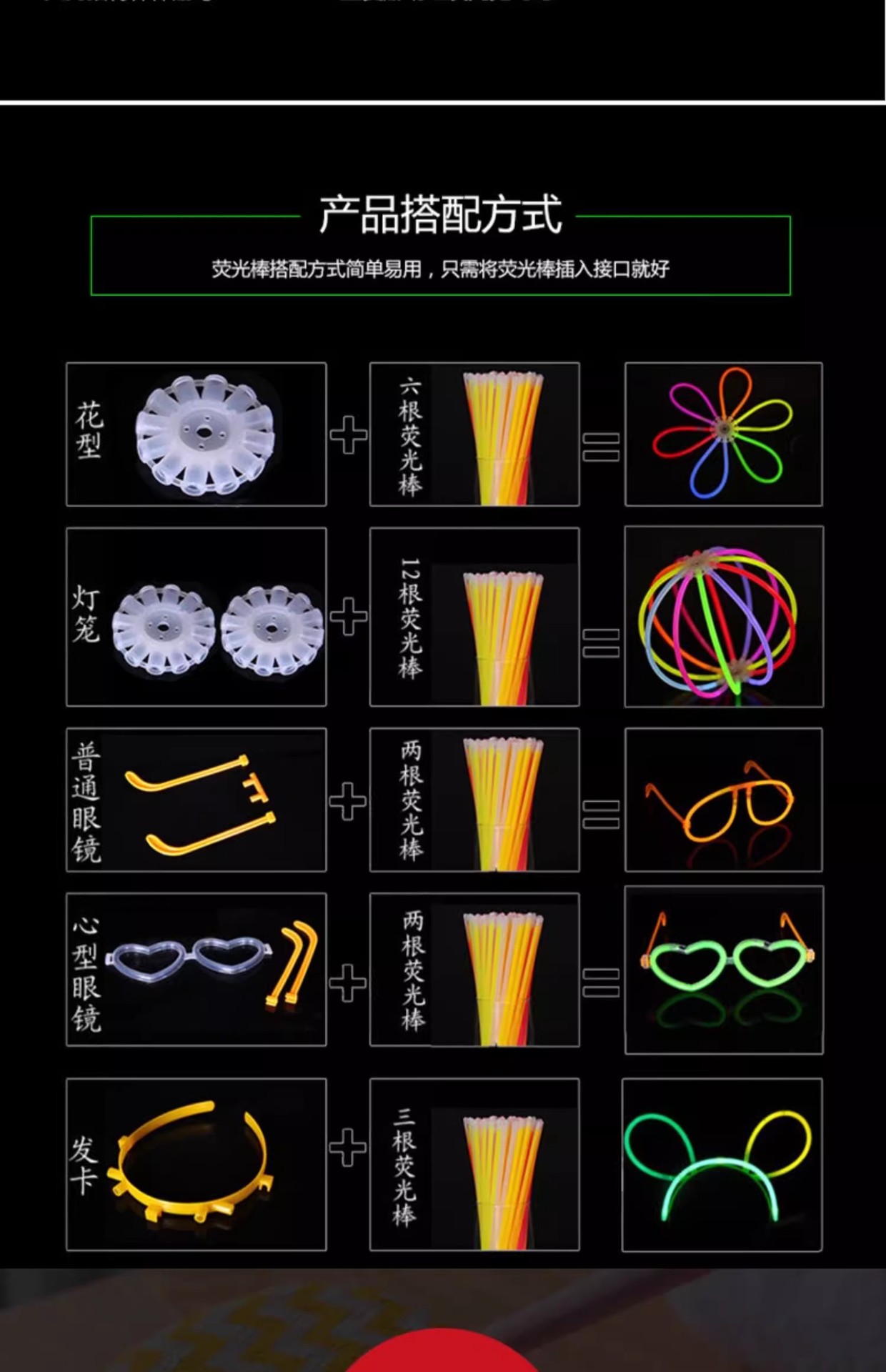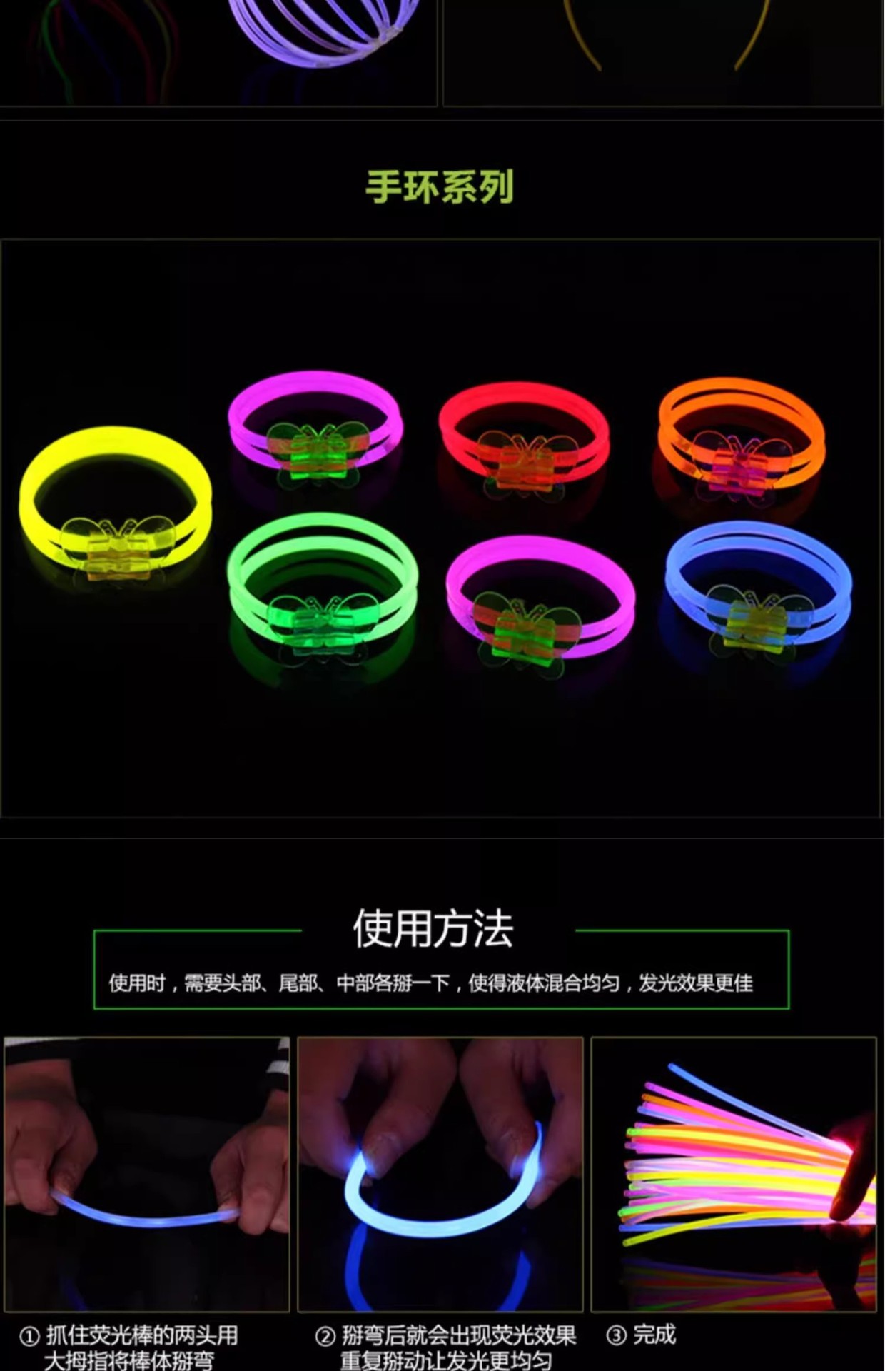 荧光棒粘衣服发光儿童莹光彩色棒晚会炫彩光银光夜光批发手环