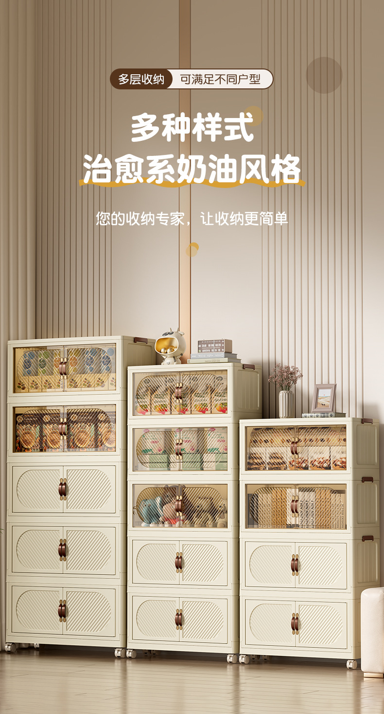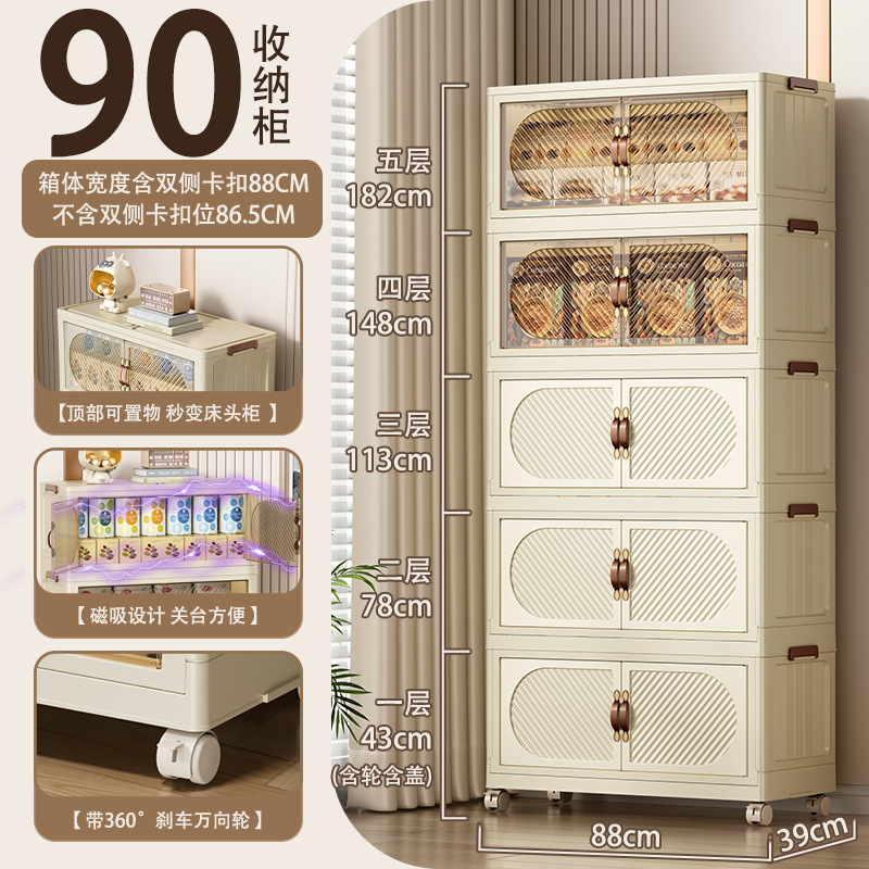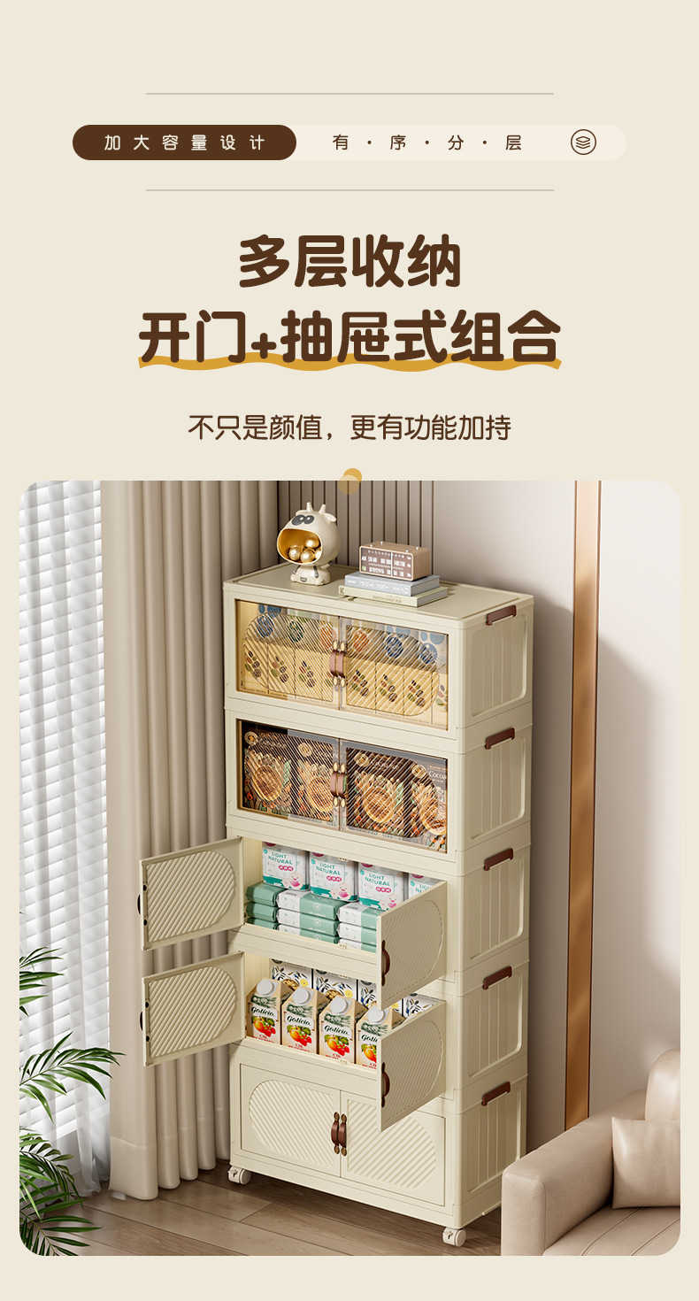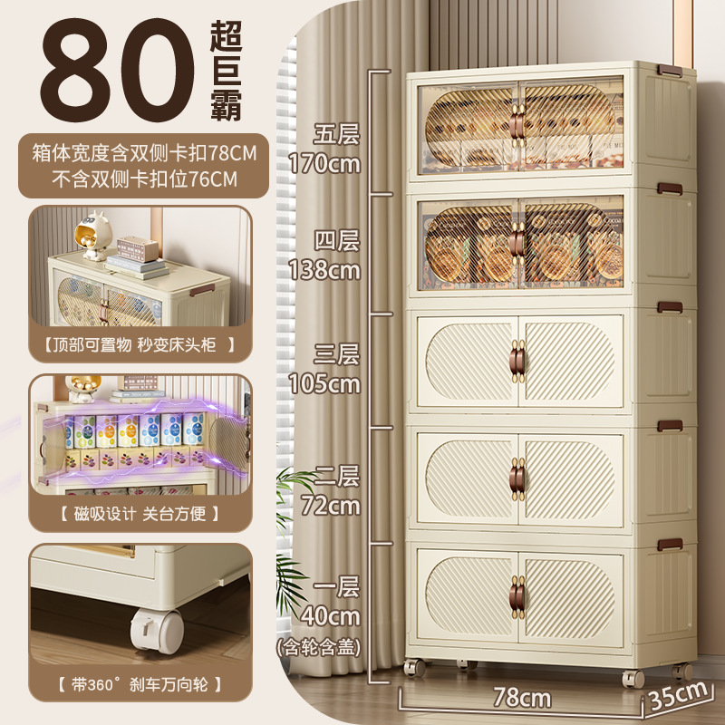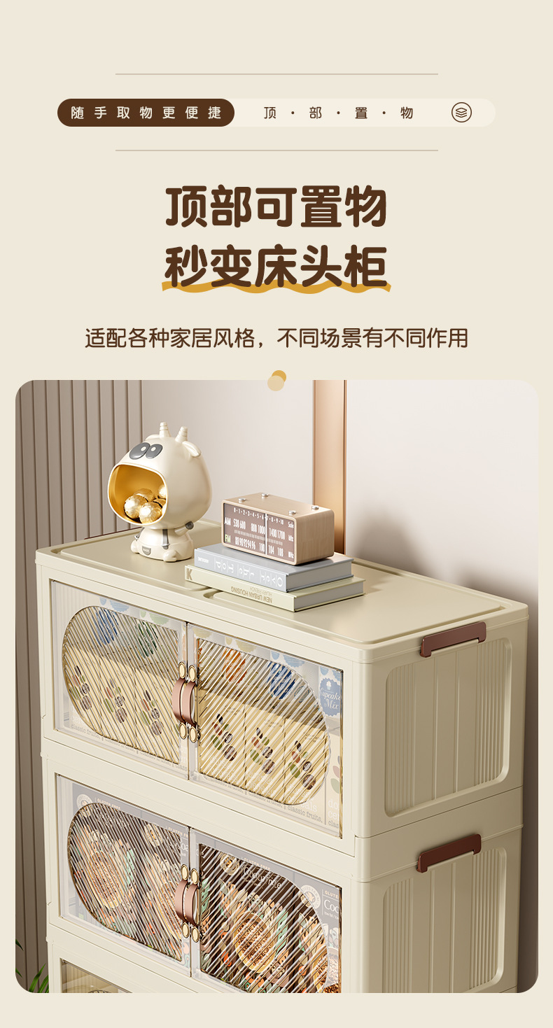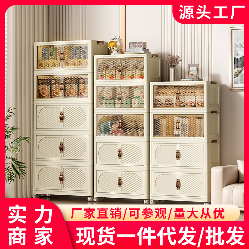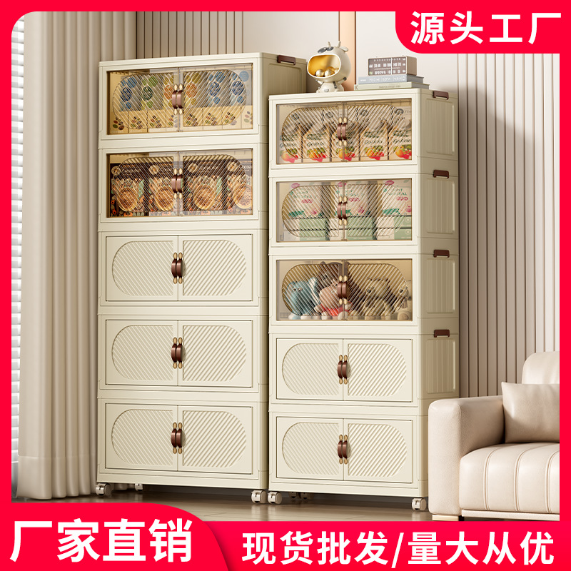 源头厂家【80面宽】家用免安装可折叠收纳柜客厅卧室零食置物柜