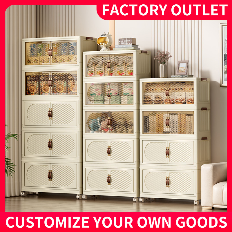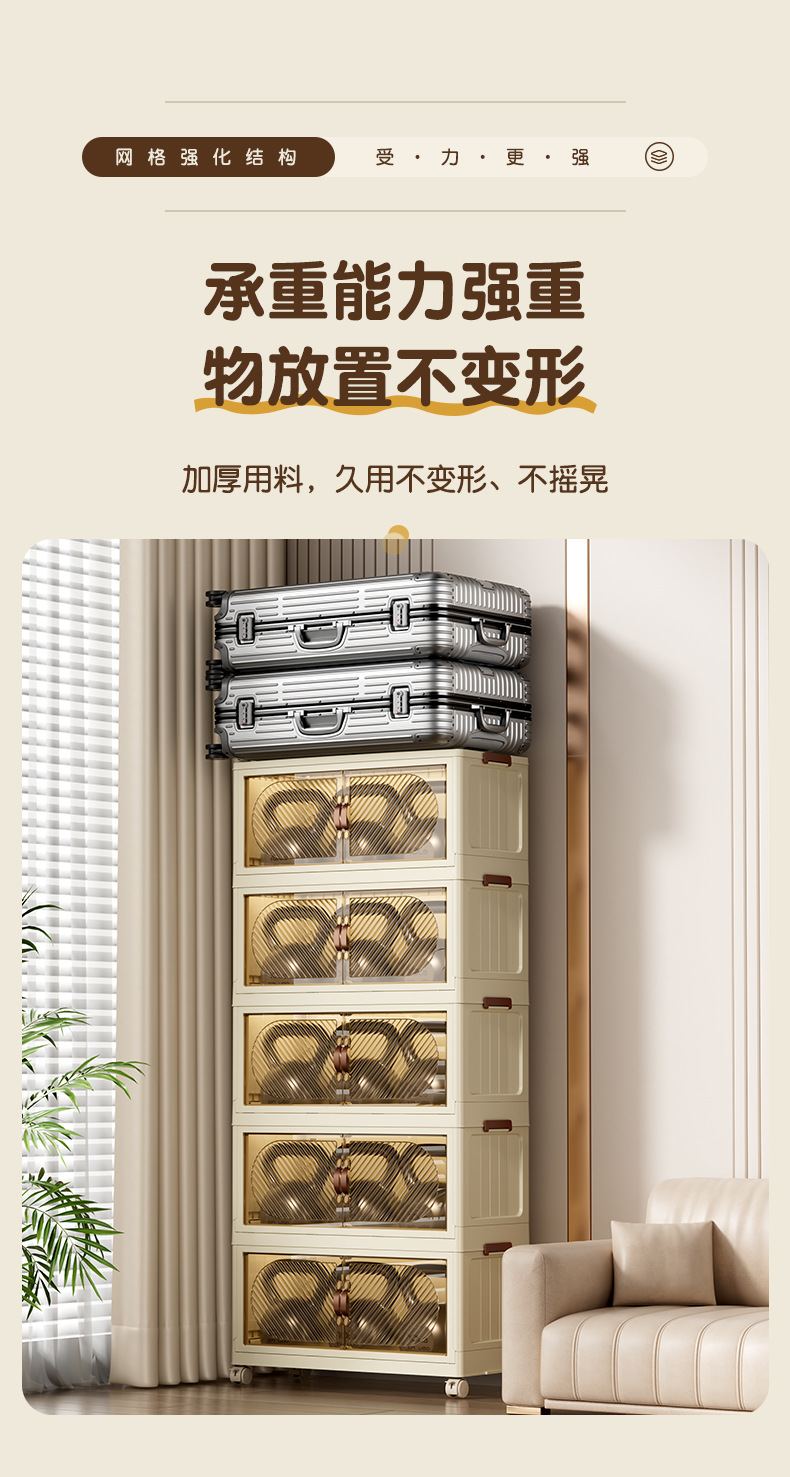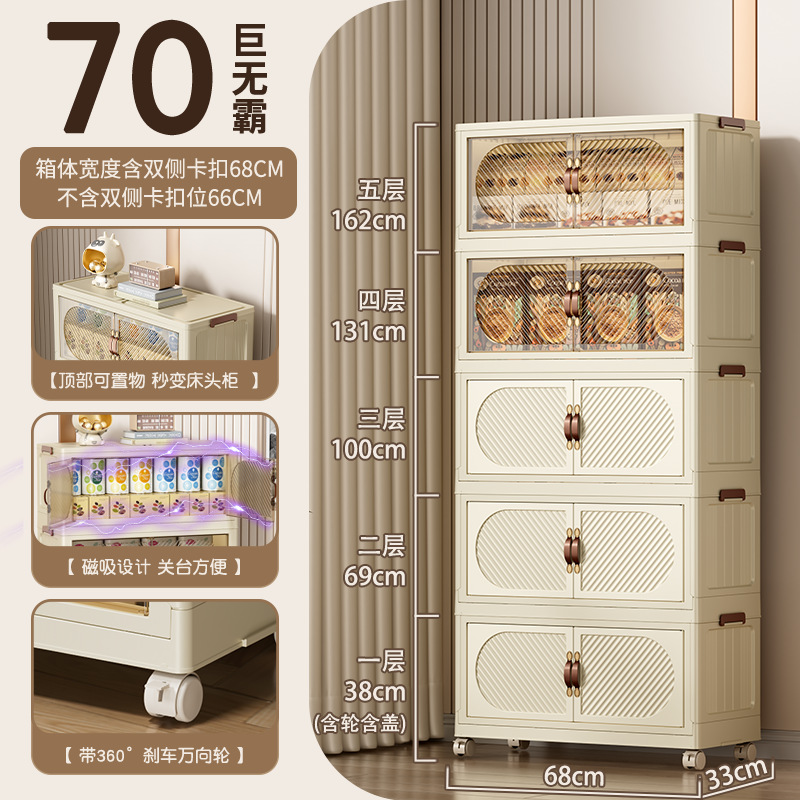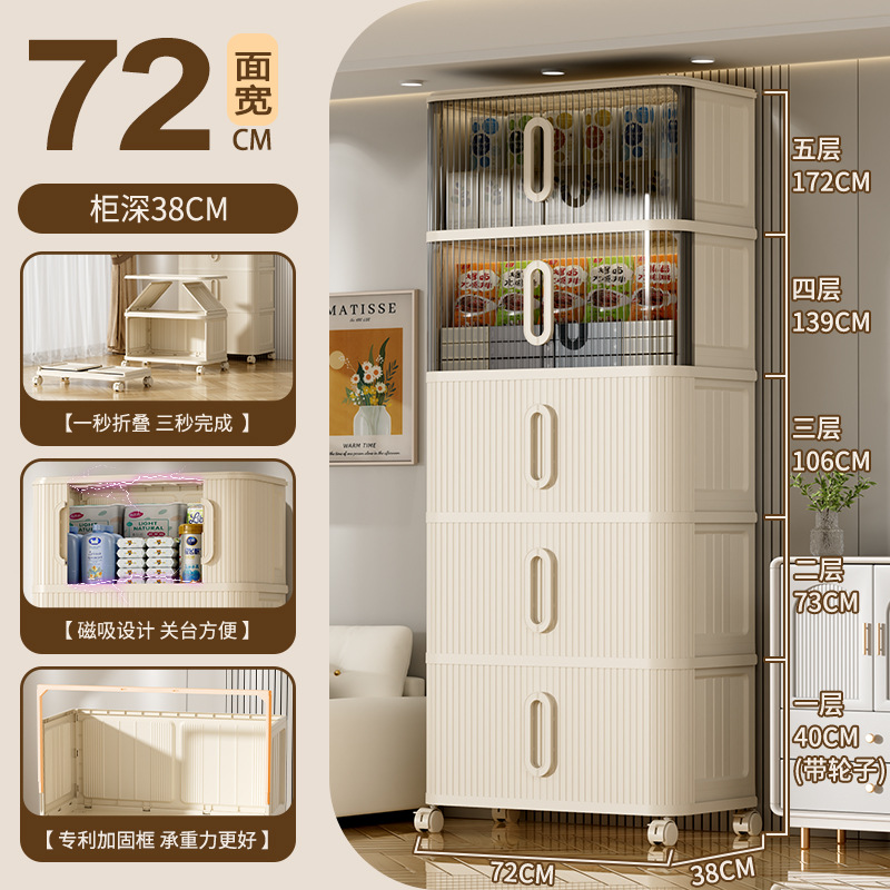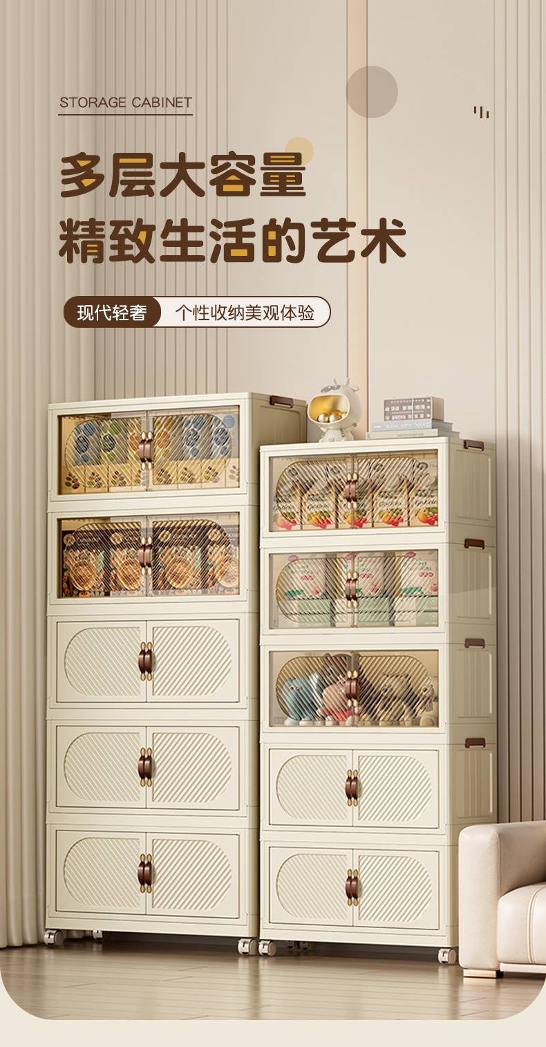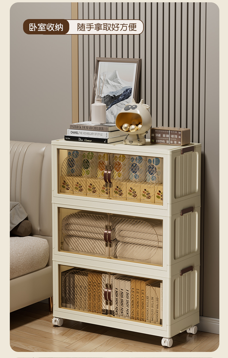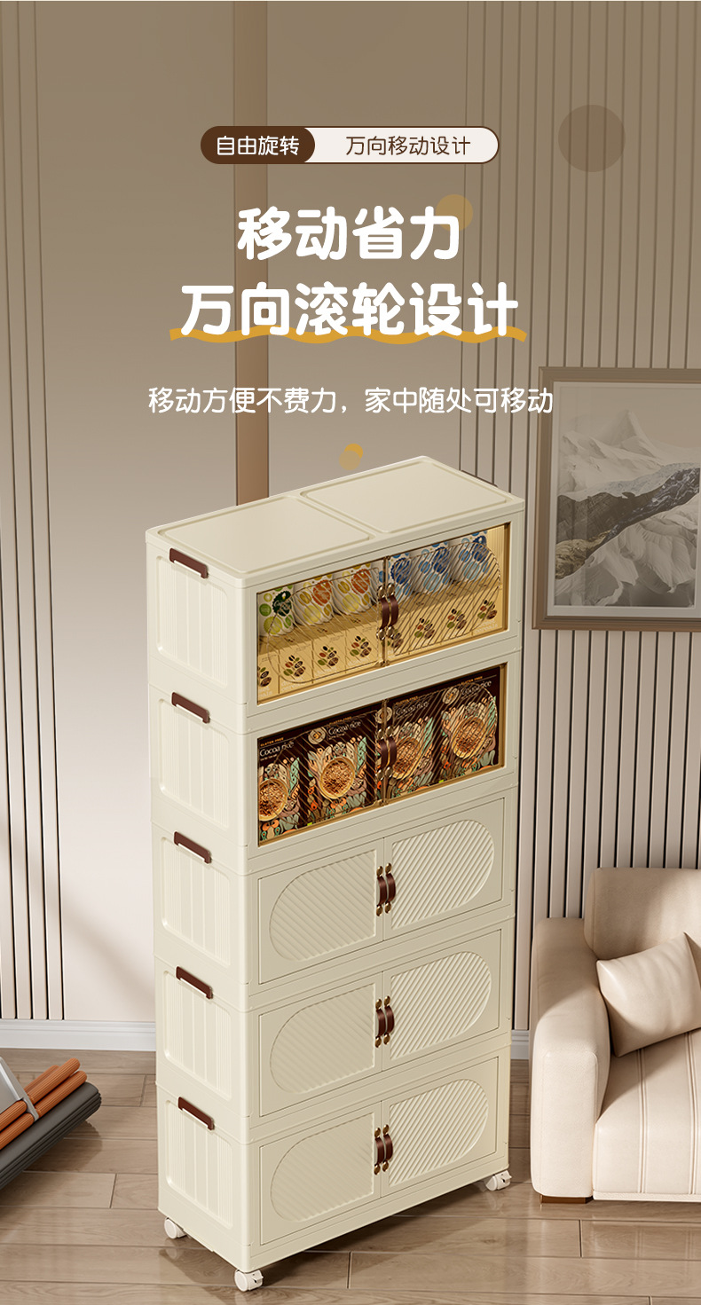 源头厂家【80面宽】家用免安装可折叠收纳柜客厅卧室零食置物柜