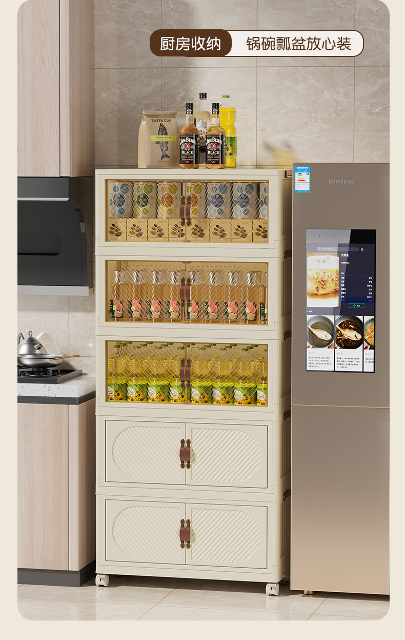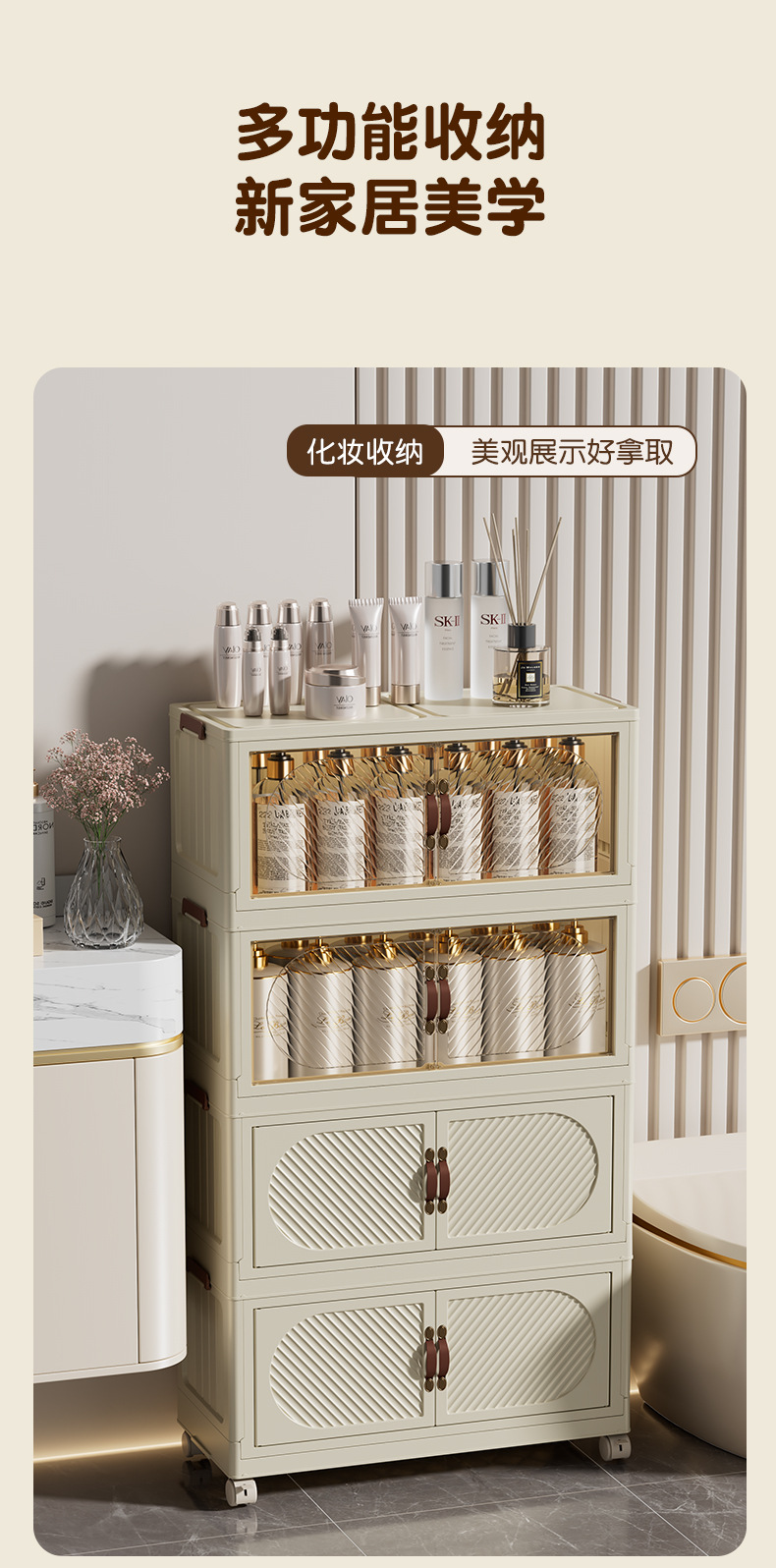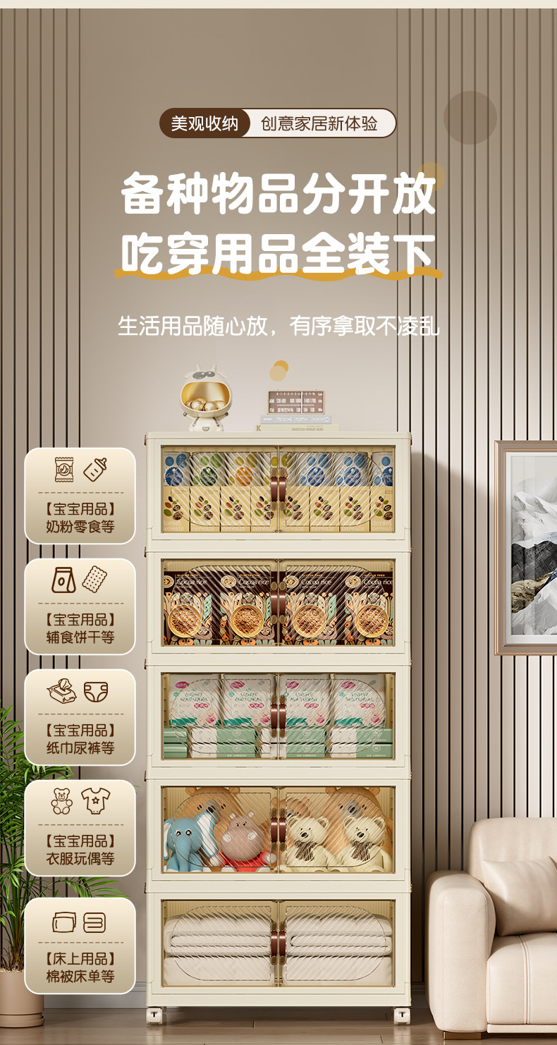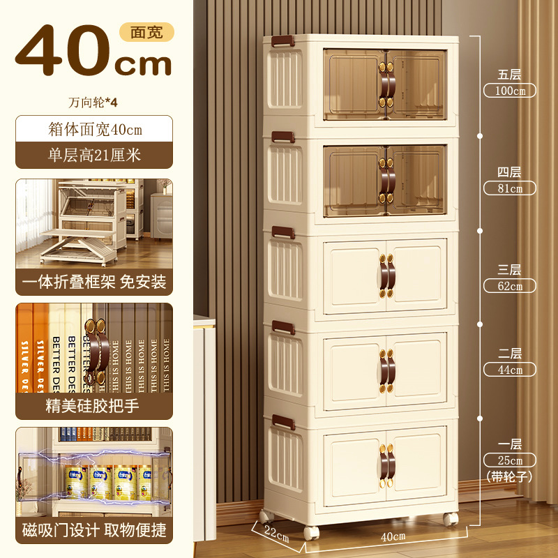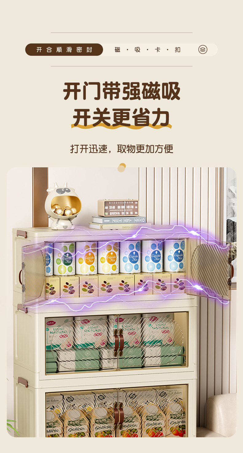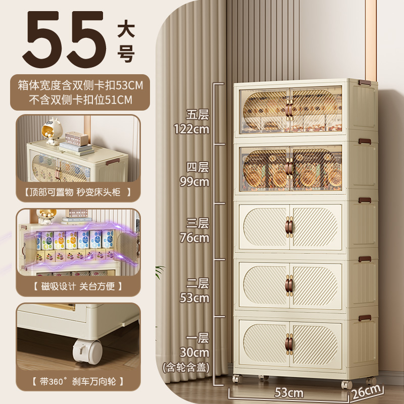 源头厂家【80面宽】家用免安装可折叠收纳柜客厅卧室零食置物柜