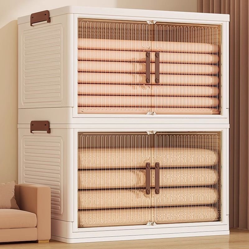 跨境免安装透明双开门折叠收纳柜衣物储物柜家用玩具塑料箱置物柜