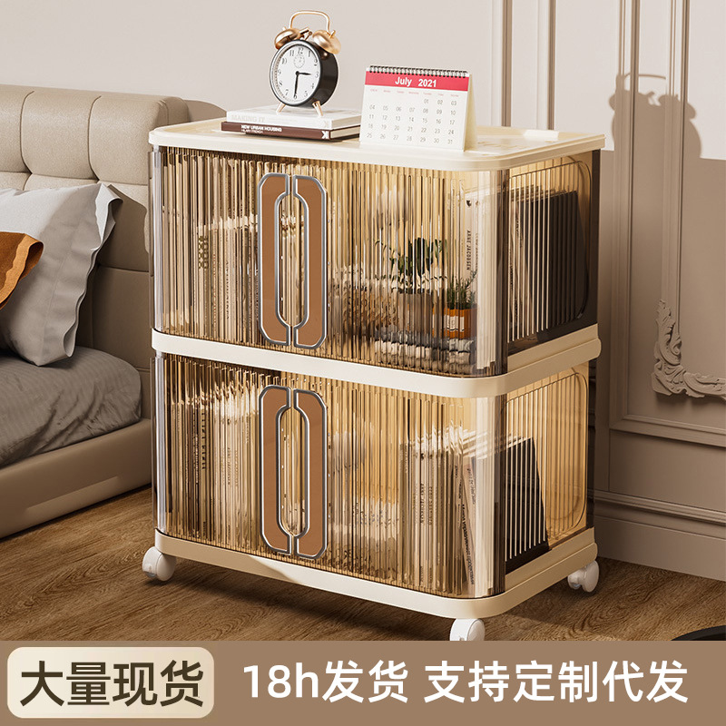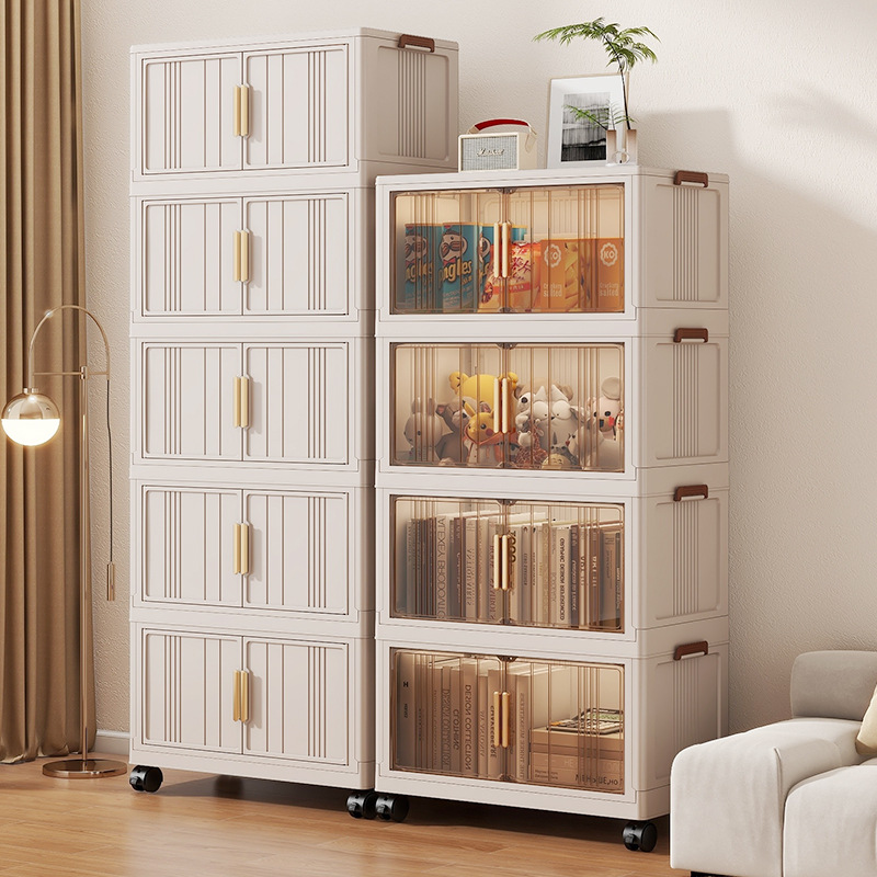 プラスチック折りたたみ収納ボックス家庭用多層ダブルドア靴箱リビングルーム玩具整理ボックス物入れスナックキャビネット