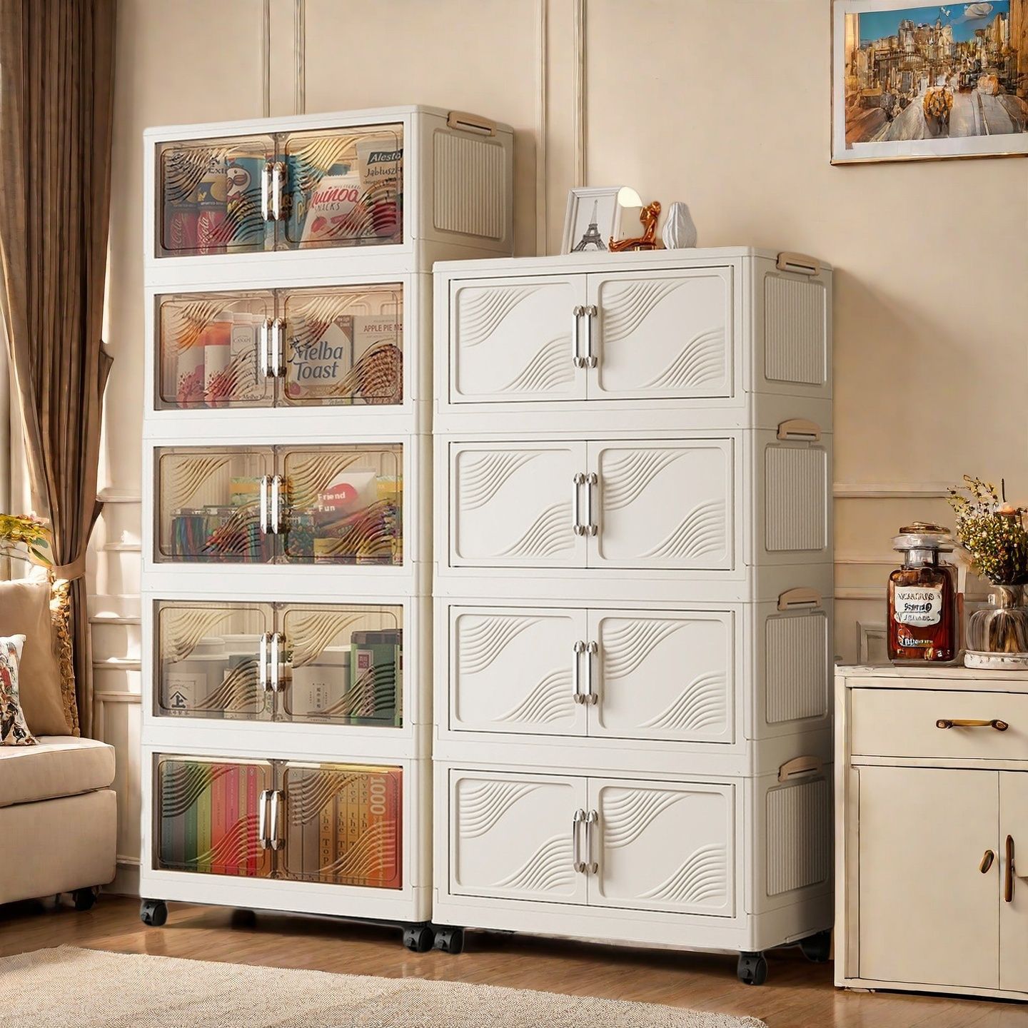 収納キャビネット家庭用ワンピース寝室折りたたみワードローブ雑貨収納キャビネット多層スナック収納キャビネットキャビネットドア付き