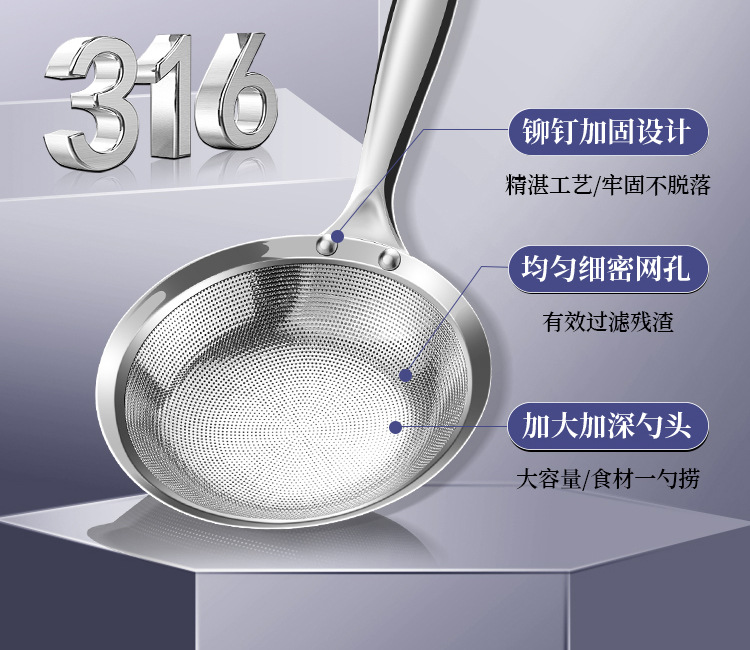 316 ステンレス鋼の泡取りスプーン、油取りザル、家庭用キッチン密メッシュフィルタースプーン、泡取り油取りアーティファクト卸売