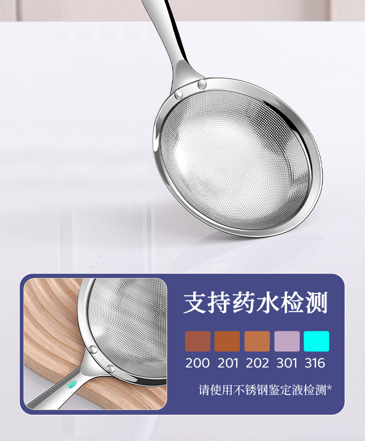 加厚304不锈钢打沫勺细密网孔一体成型家用漏勺撇油撇浮沫隔油勺
