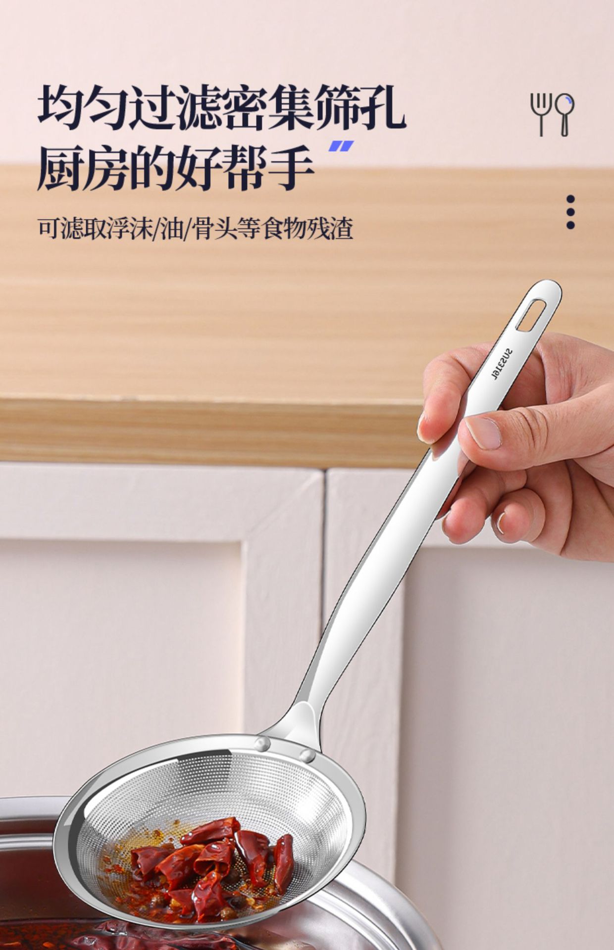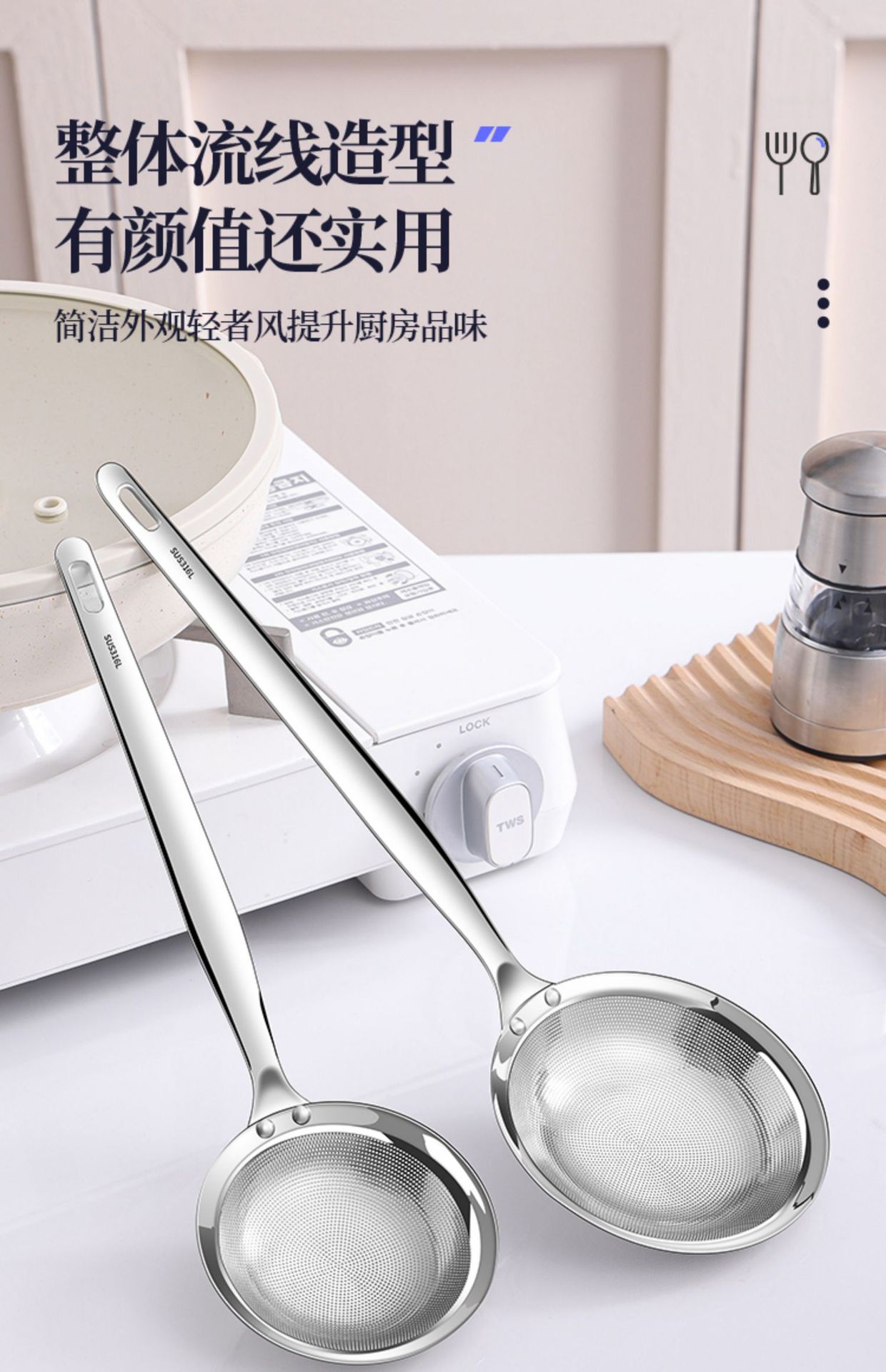 家用厨房打沫勺316不锈钢漏勺火锅撇浮沫勺 去沫网红神器抖音同款