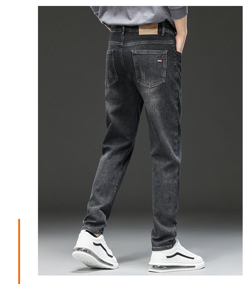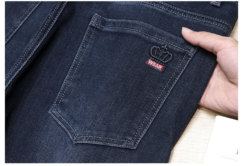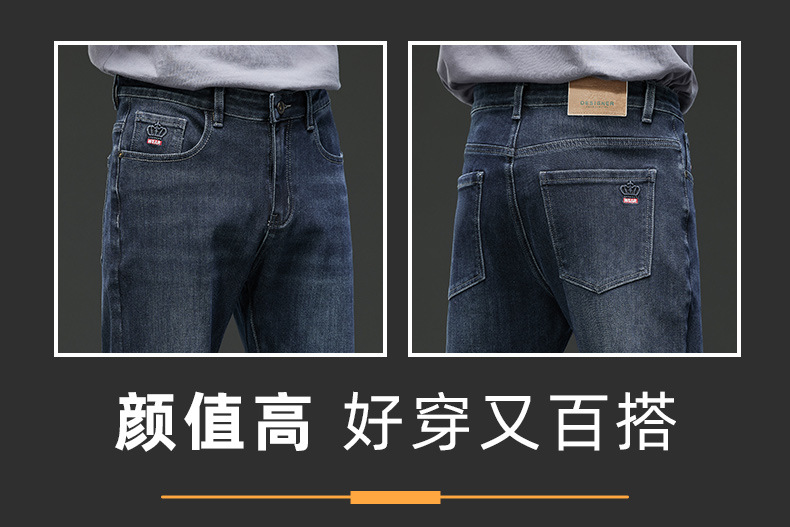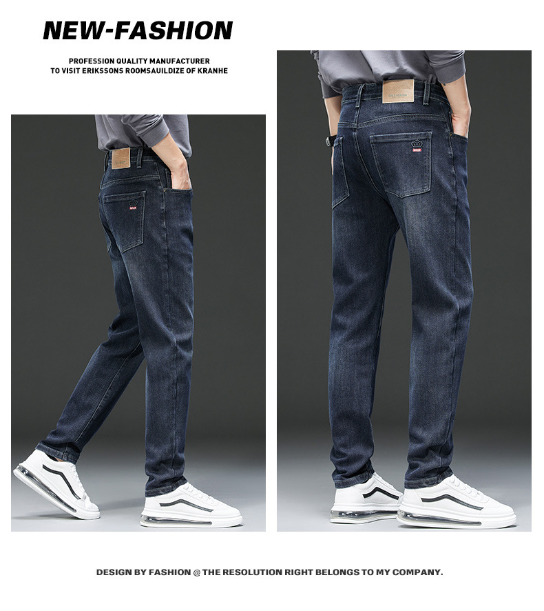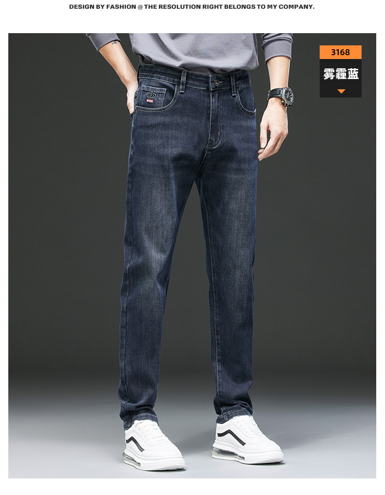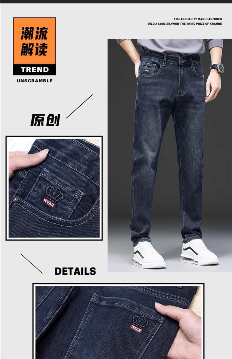 ジーンズメンズ春外国貿易厚く暖かいハイエンドルーズストレートパンツスリムフィットストレッチ多用途パンツ 2287