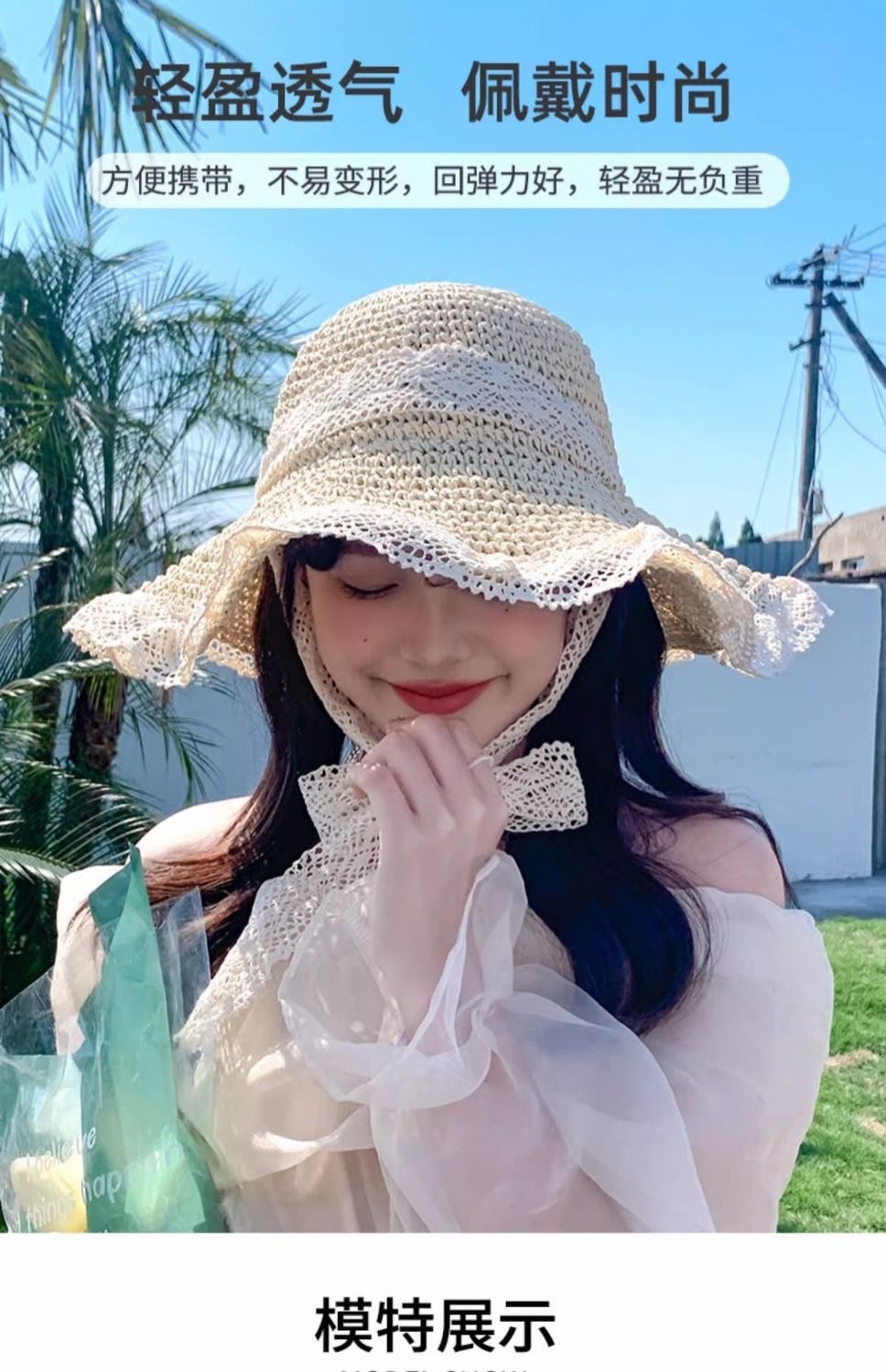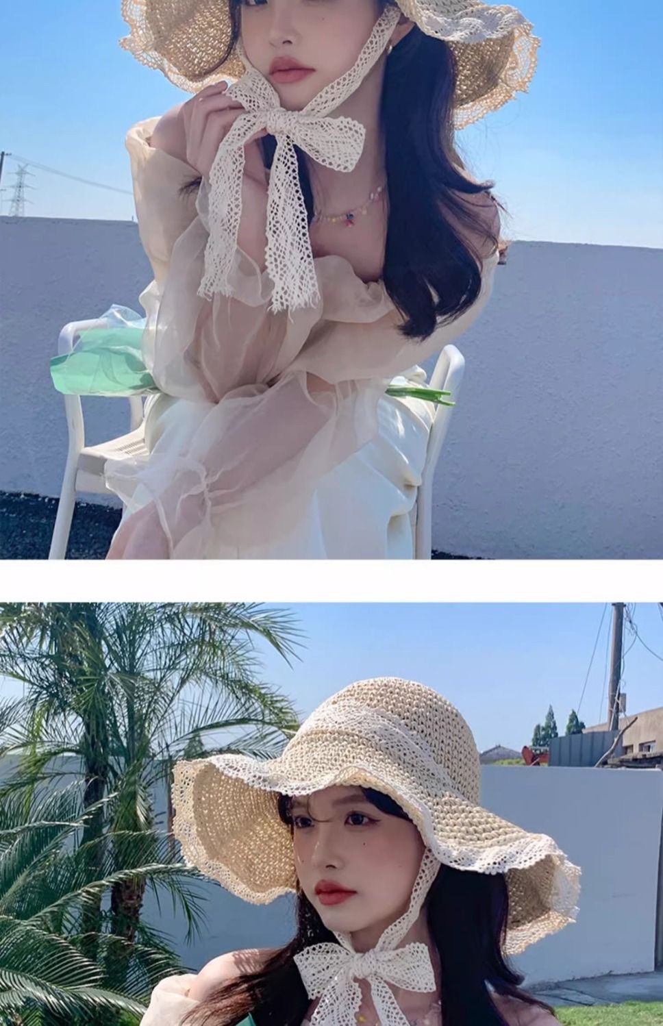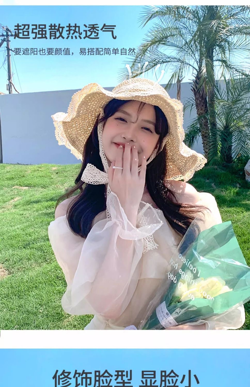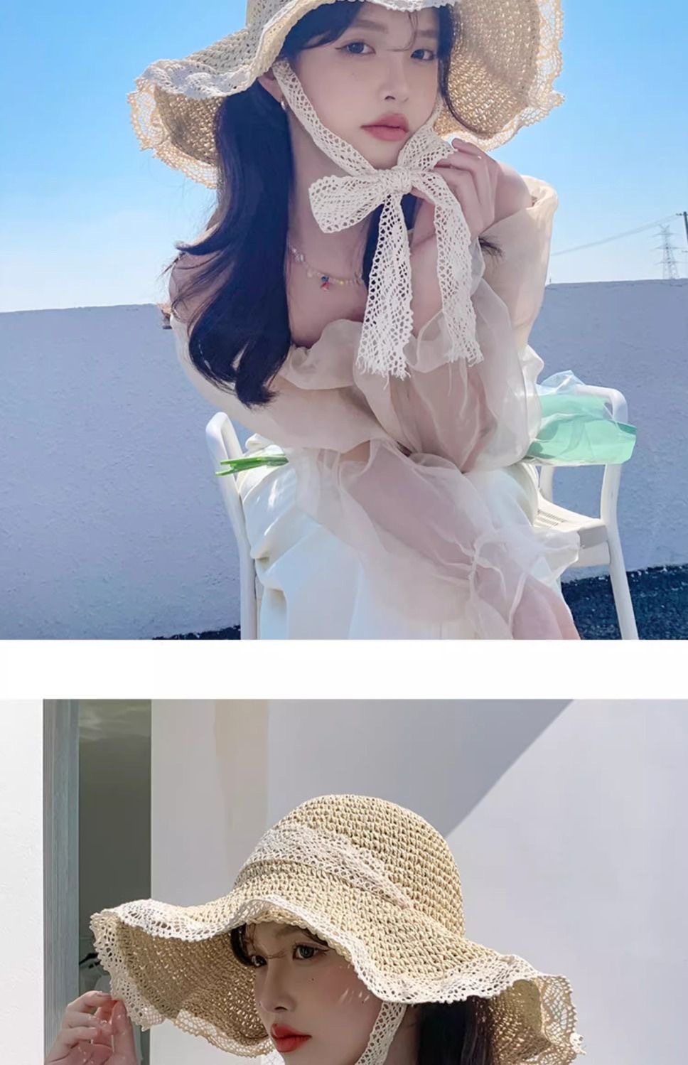ビーチリゾートスタイルの帽子、インターネットセレブの帽子、麦わら帽子、レースのつばの大きな帽子、顔全体を覆う日焼け止め帽子