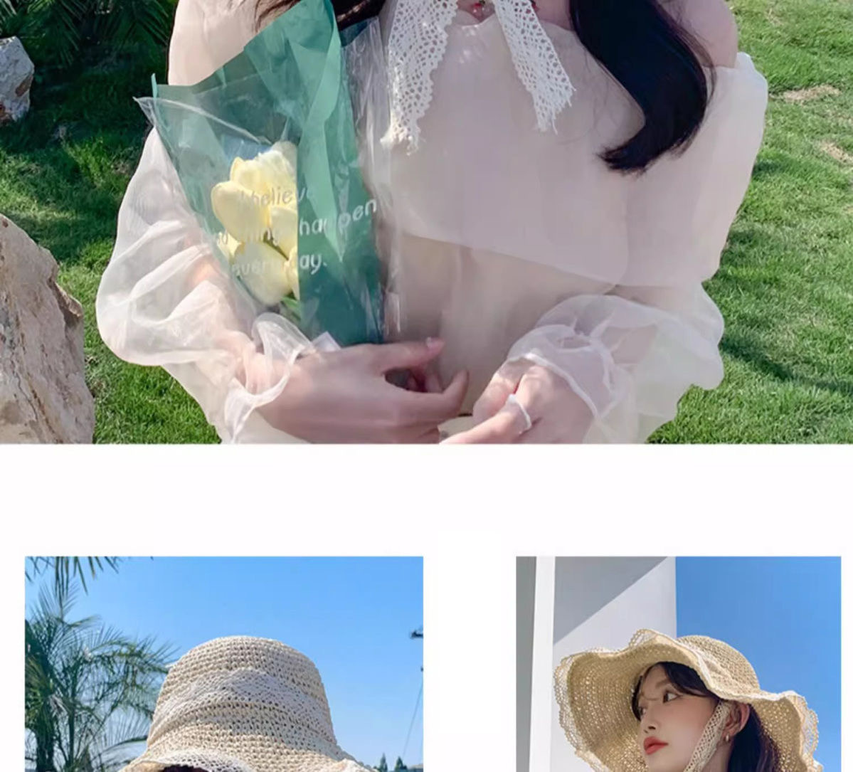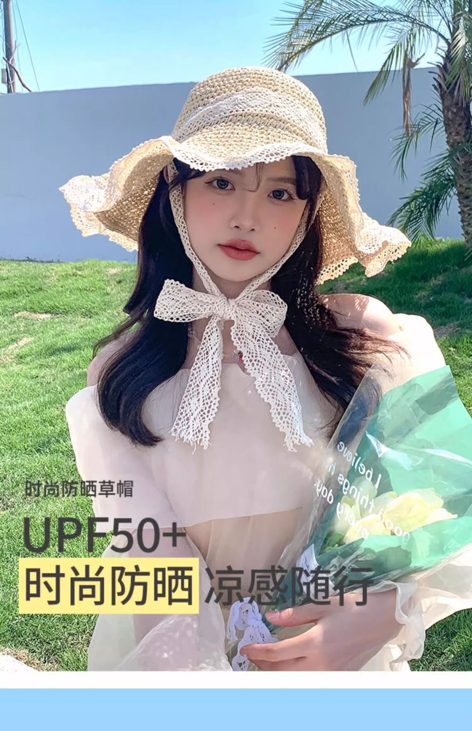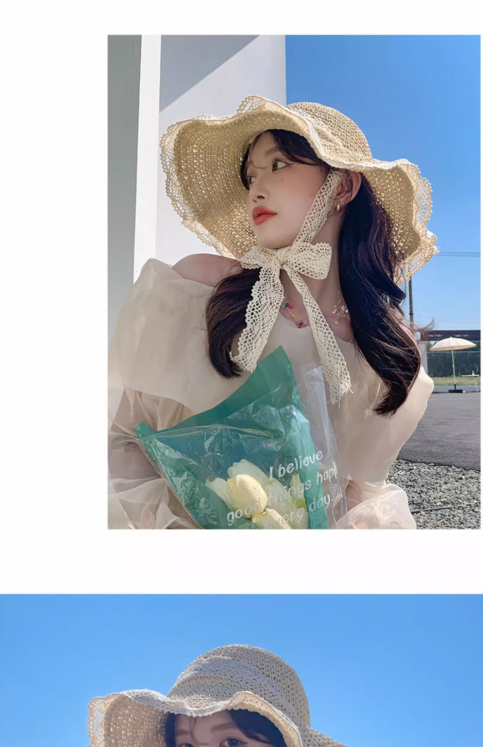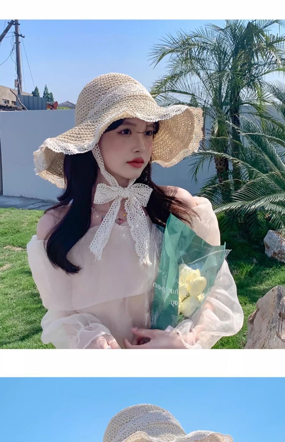 ビーチリゾートスタイルの帽子、インターネットセレブの帽子、麦わら帽子、レースのつばの大きな帽子、顔全体を覆う日焼け止め帽子