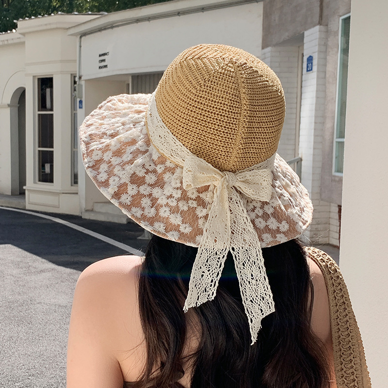 帽子女性の 2025 新しいレースわら太陽の帽子夏のビーチ休暇大きなつば通気性日焼け止め麦わら帽子
