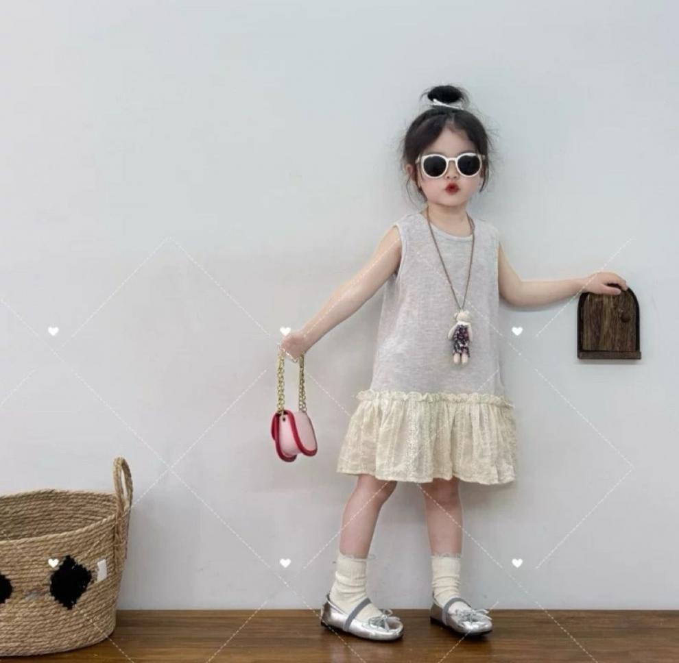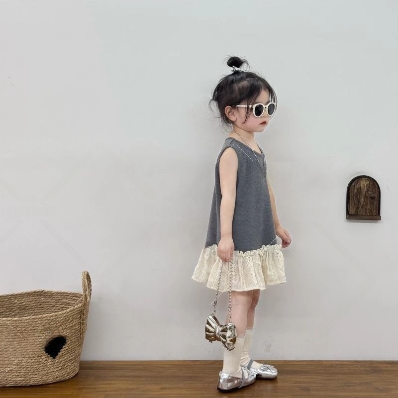 女童夏季新款2025小童宝宝极简无袖叠搭背心裙女童蕾丝裙摆连衣裙