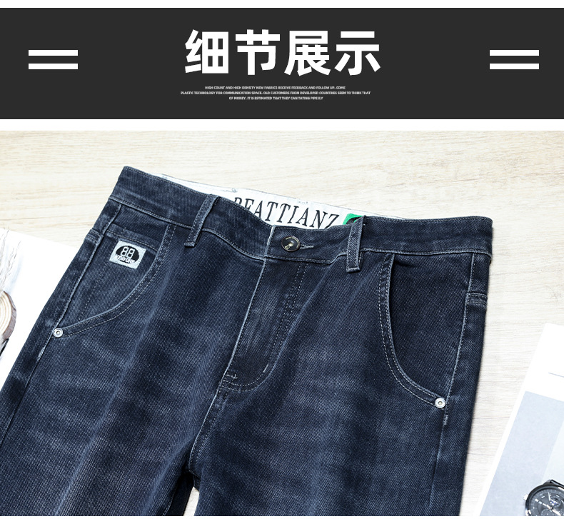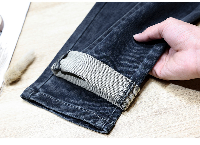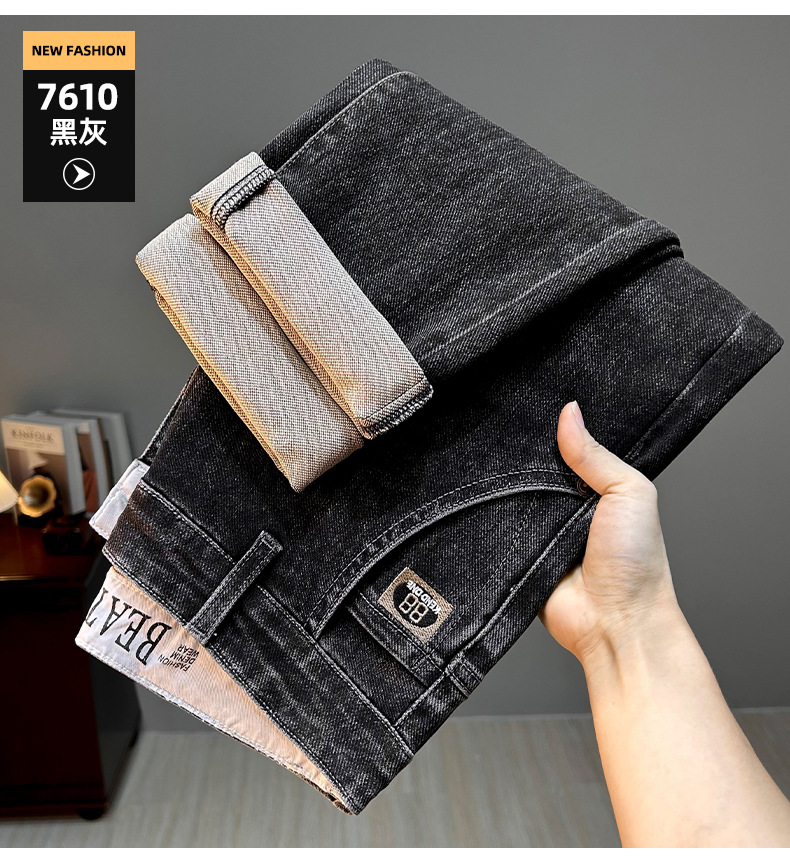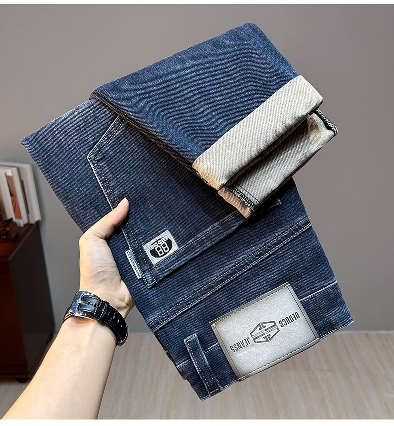 ジーンズメンズ春外国貿易厚く暖かいハイエンドルーズストレートパンツスリムフィットストレッチ多用途パンツ 2287