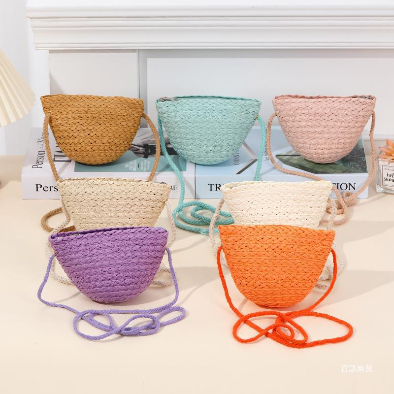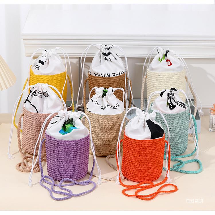 バックパック旅行女の子海辺財布かわいいわらメッセンジャーバッグコイン携帯電話ミニ子供卸売わらバッグ