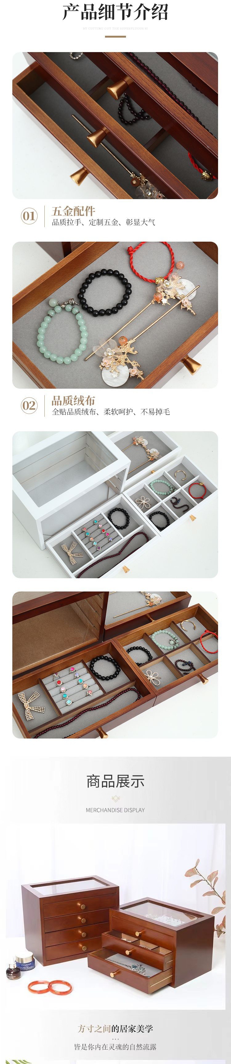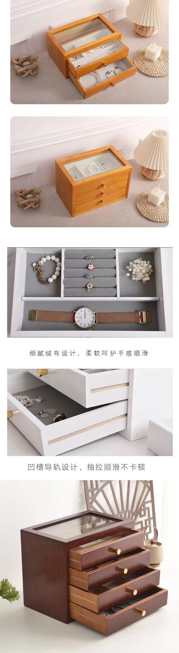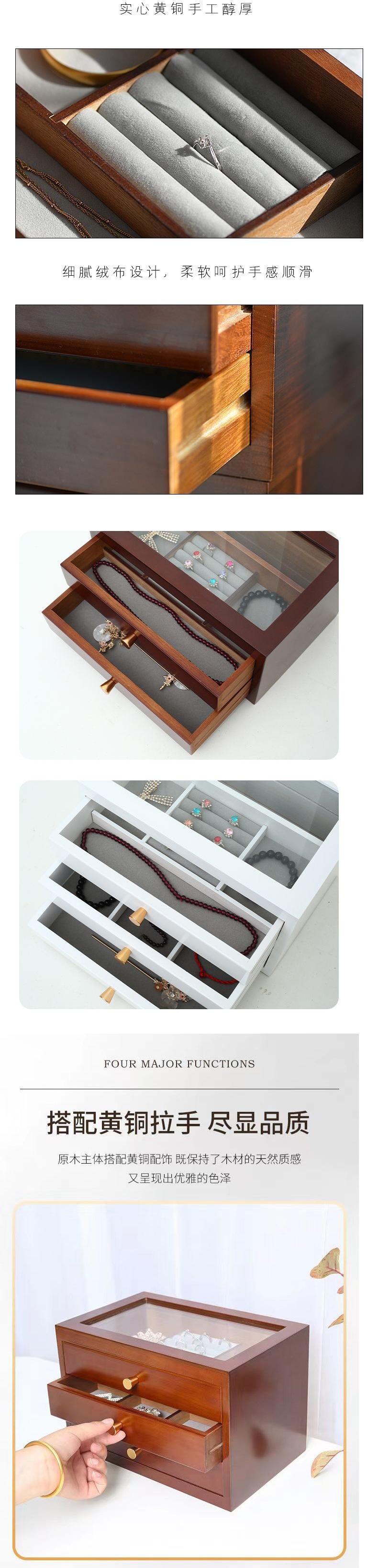 实木高档精致首饰盒大容量多层耳环戒指珠宝项链饰品收纳整理盒