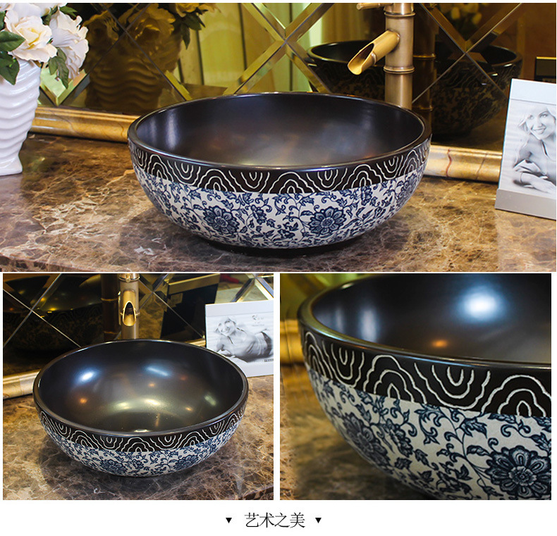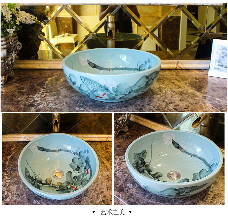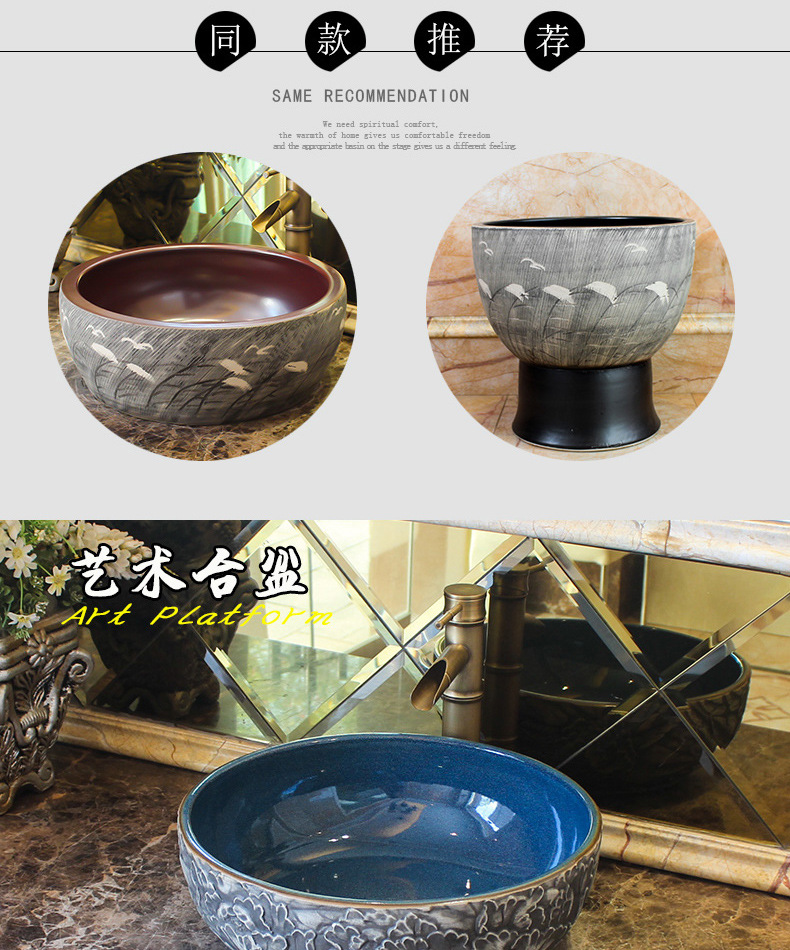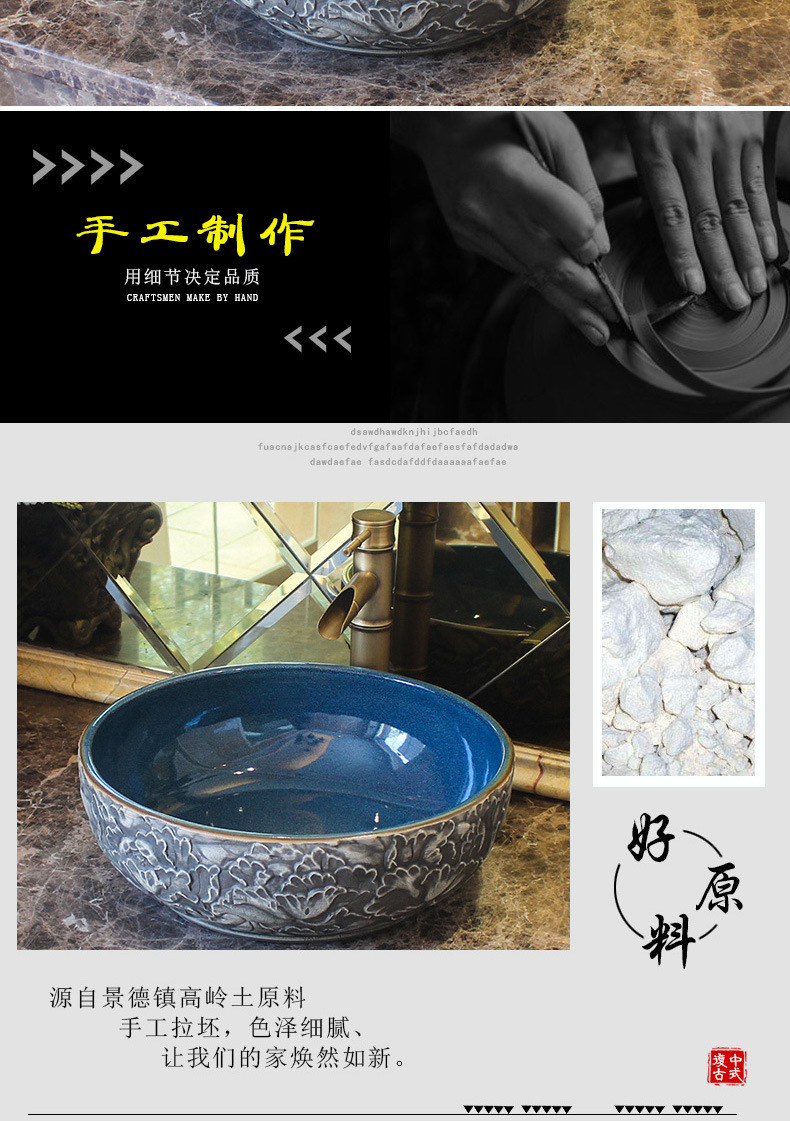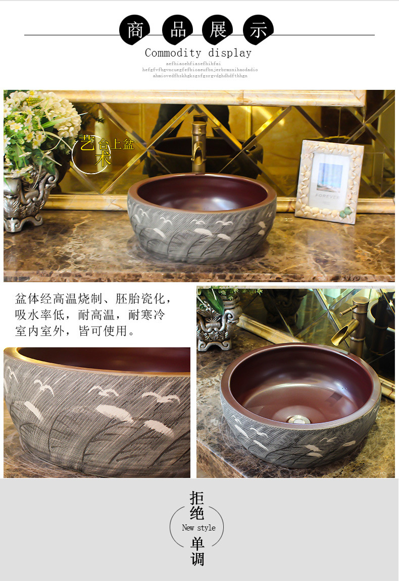 洗面台 シングル洗面器 セラミックアート洗面器 ヨーロピアンスタイル レトロ オーバーテーブル洗面器 ラウンド洗面器 景徳鎮ホーム p^