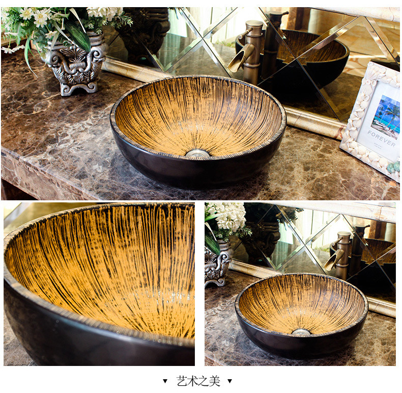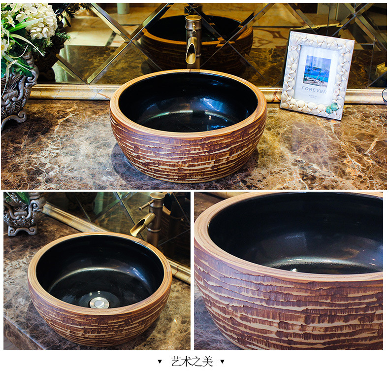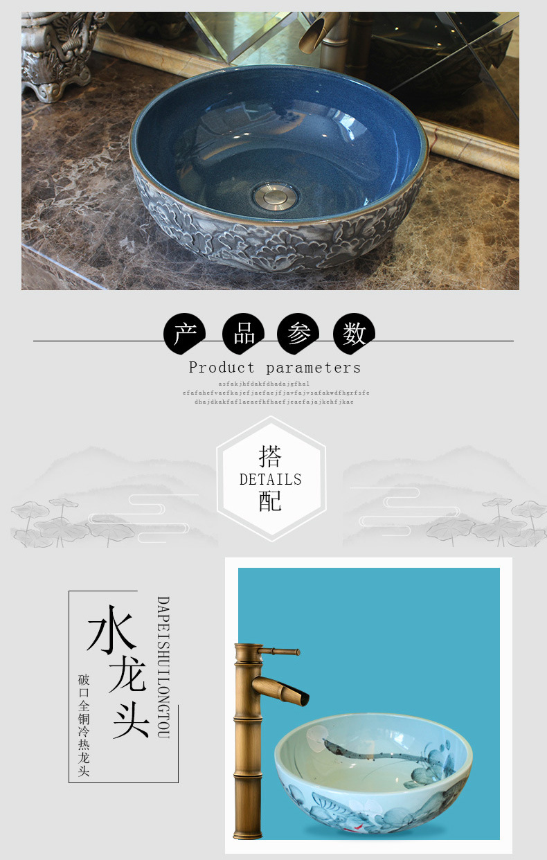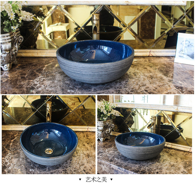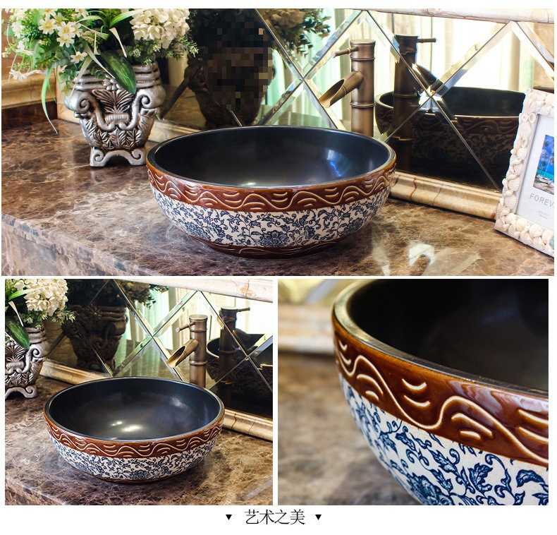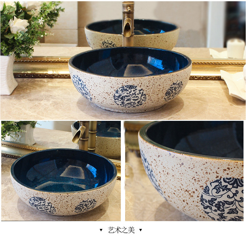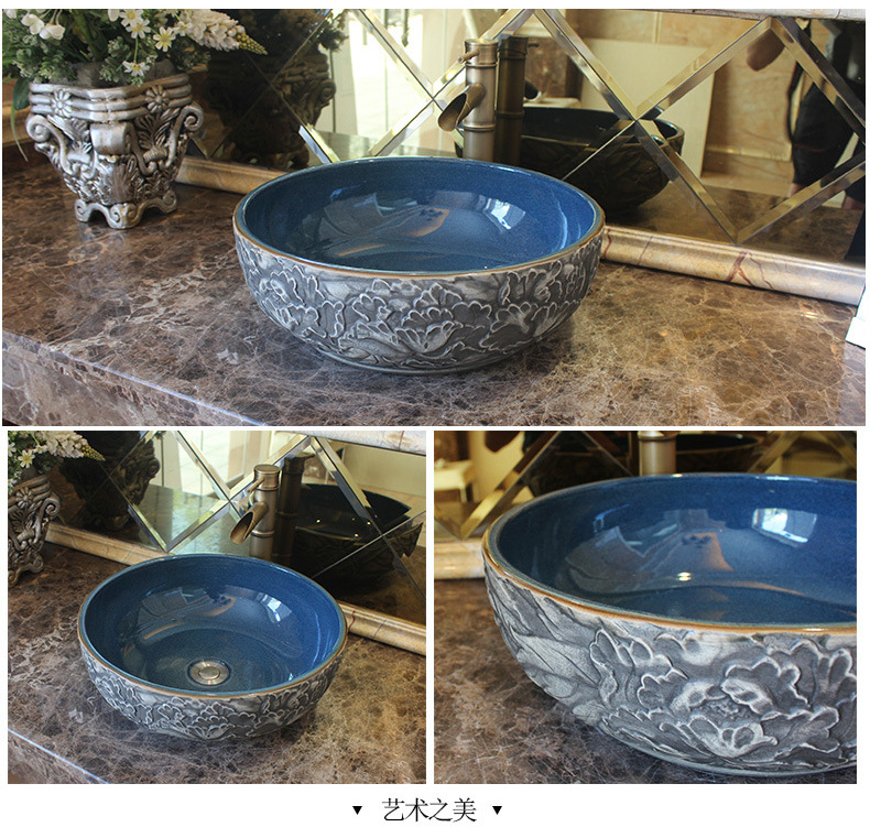 カウンタートップ洗面器シングル洗面器セラミックアート洗面器ヨーロッパスタイルレトロ洗面器ラウンド洗面器家庭用衛生p^