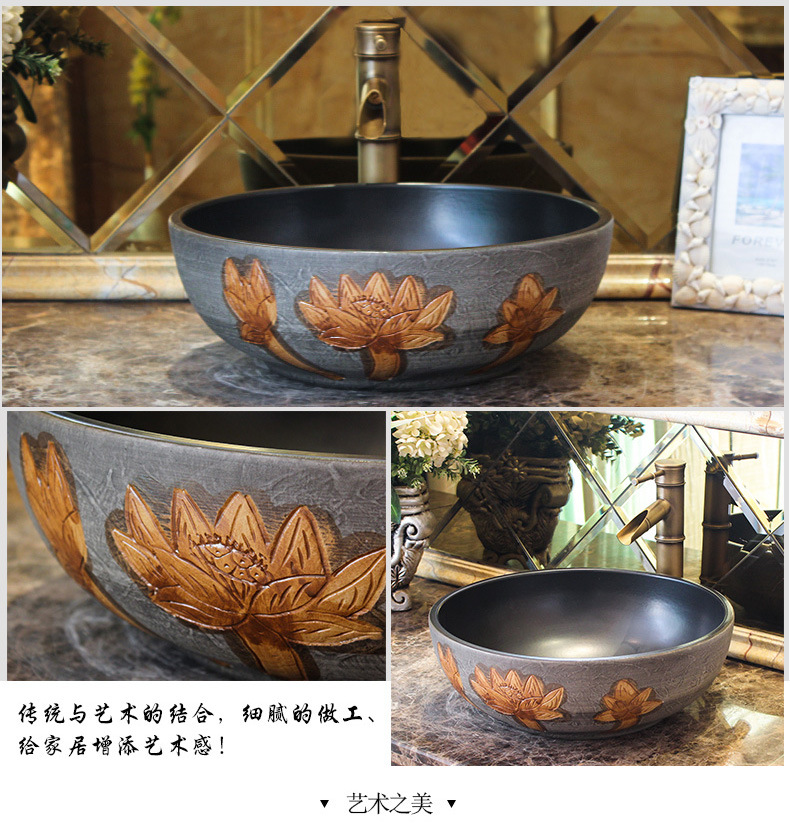 アンティーク芸術家庭用卓上盆彫刻ハス楕円陶磁器大サイズ洗面器家庭用洗面器新中国式