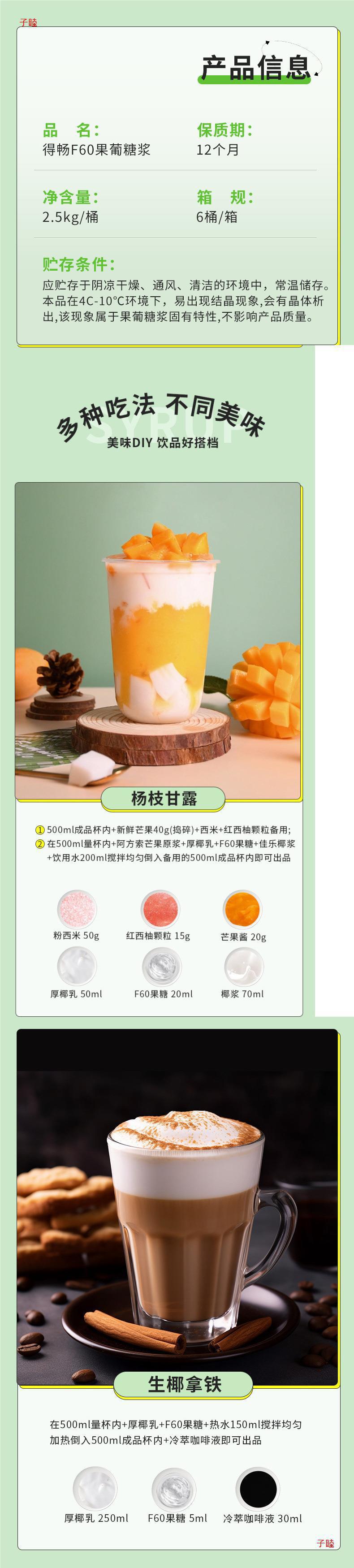 得畅F60糖浆2.5KG桶装柠檬茶调味果糖咖啡奶茶专用原料糖浆商用