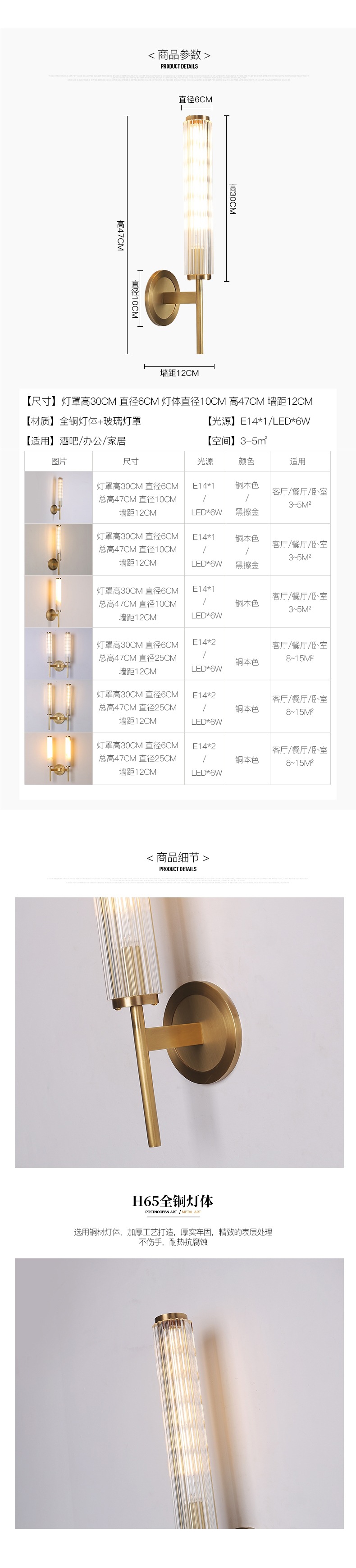 全銅壁灯客間背景壁灯軽豪華ホテル通路廊下壁灯創意水晶寝室ベッドサイドランプ