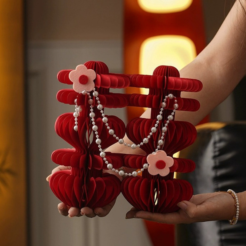 ハッピーワードウェディングルームレイアウトデスクトップ立体装飾ハイエンドダブル図折り紙装飾品結婚式の寝室リビングルーム結婚式用