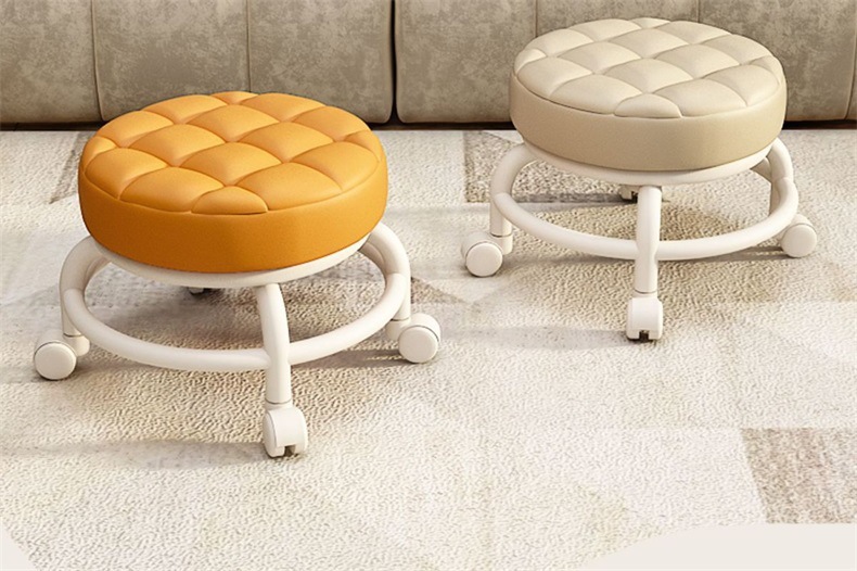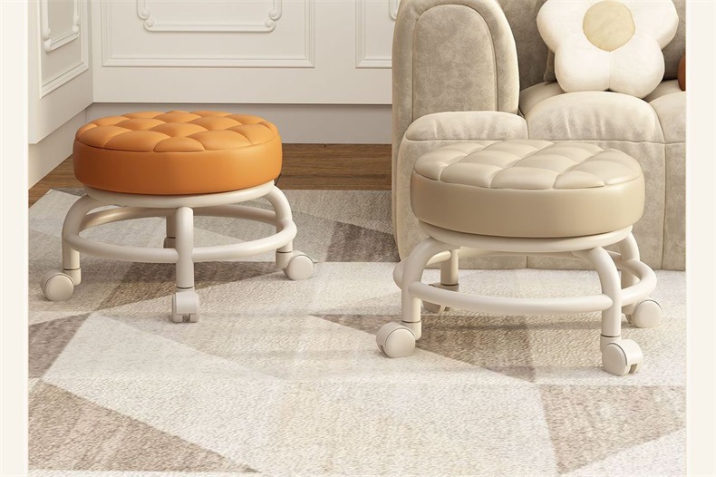 ユニバーサルホイール小さなスツールサイレントモバイル背もたれホームスライディングスツールリビングルームコーヒーテーブルロースツールベビー幼児スツールレザースツール