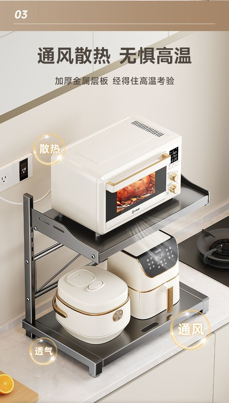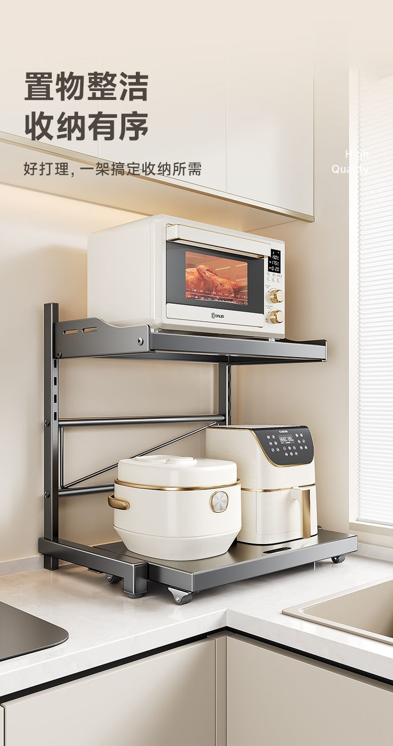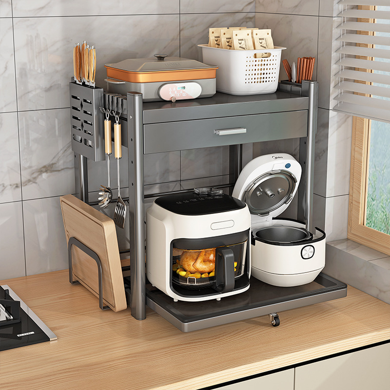 厨房微波炉置物架台面多功能烤箱电饭煲收纳架多层可抽拉带抽屉架