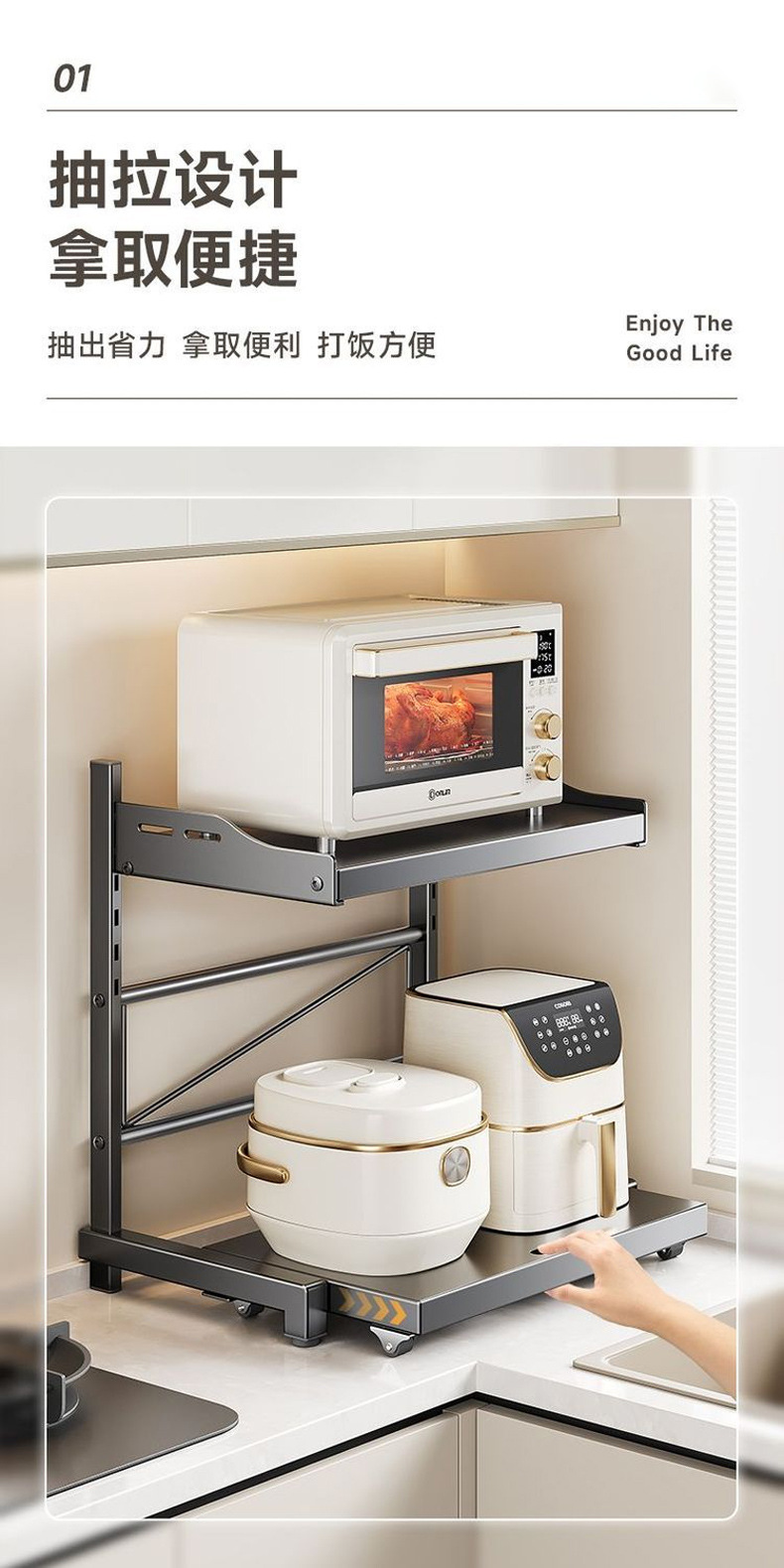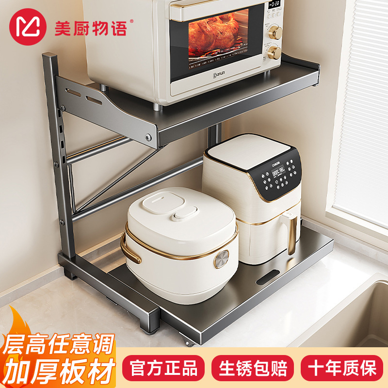 美厨物语厨房置物架多功能家用台面可抽拉微波炉收纳多层置物架子