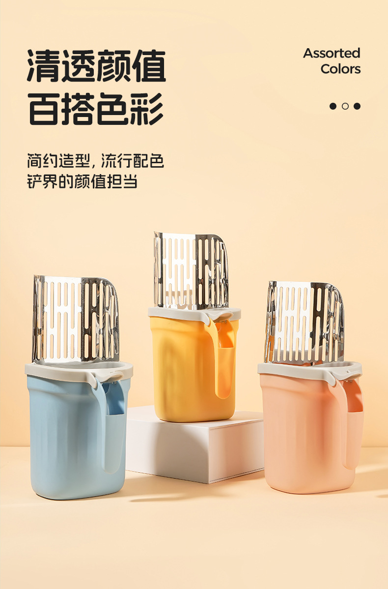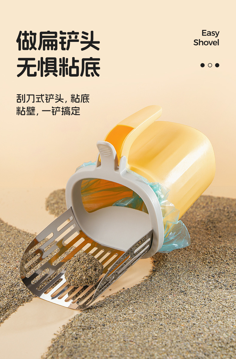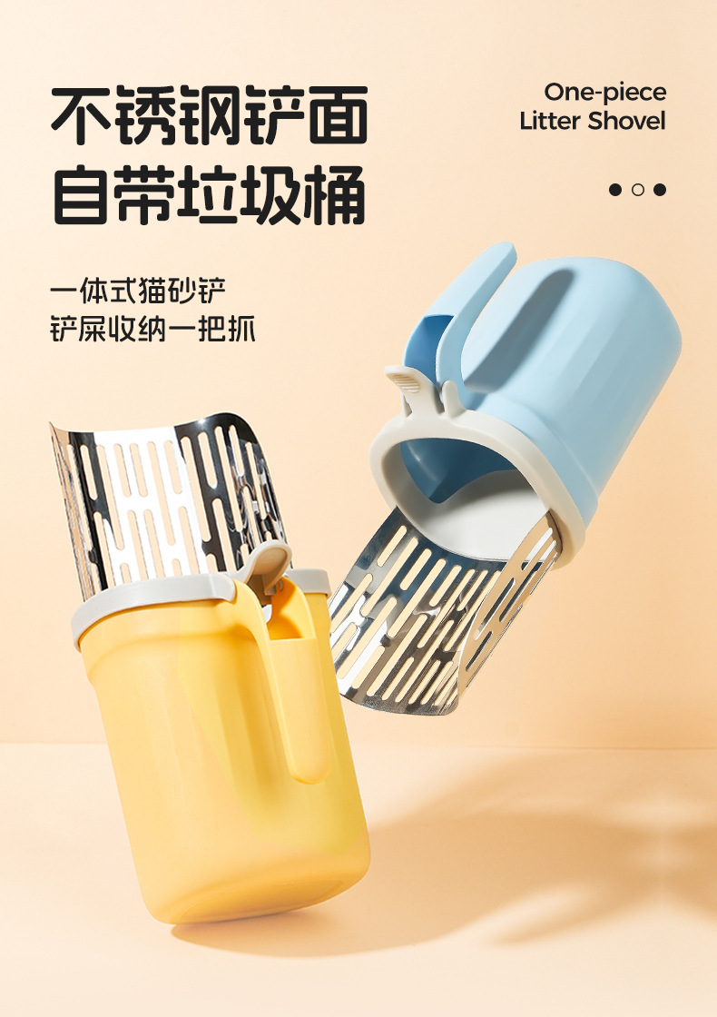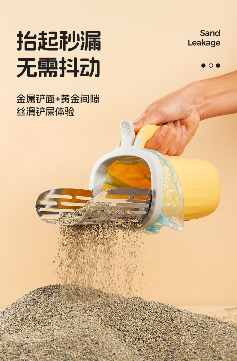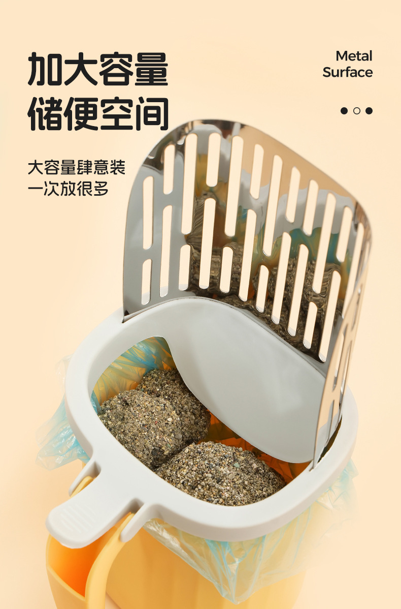 ペット用金属一体型猫砂スコップ、ゴミ袋、掃除道具、取り外し可能な大容量の糞スコップが付属しています。