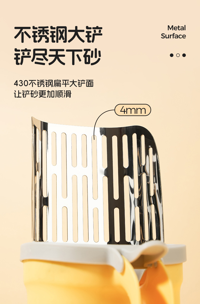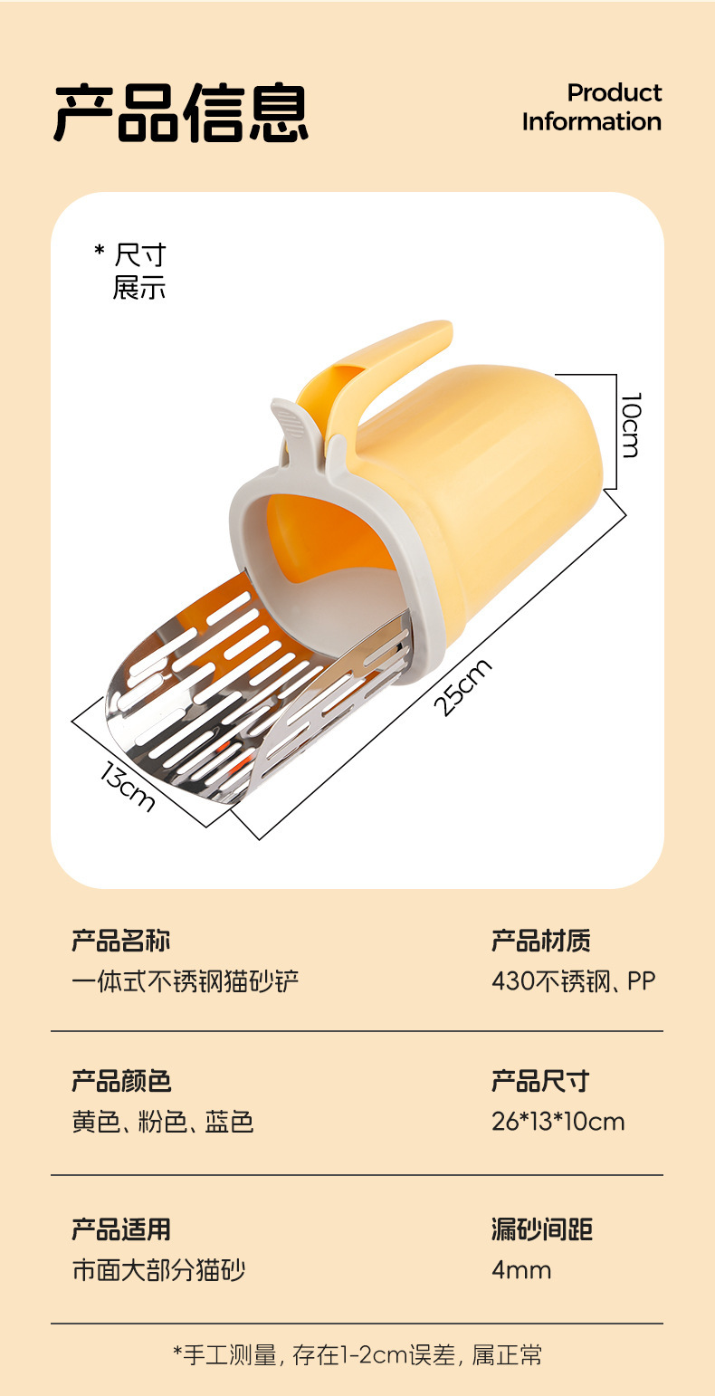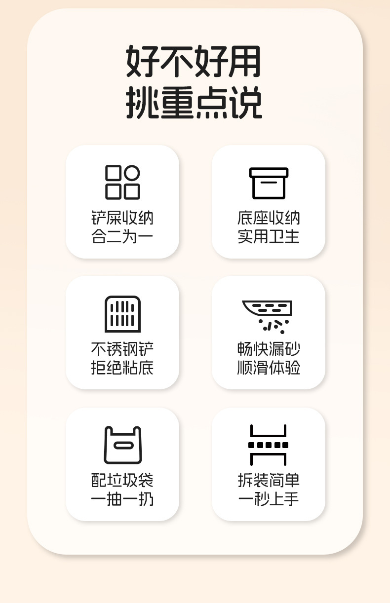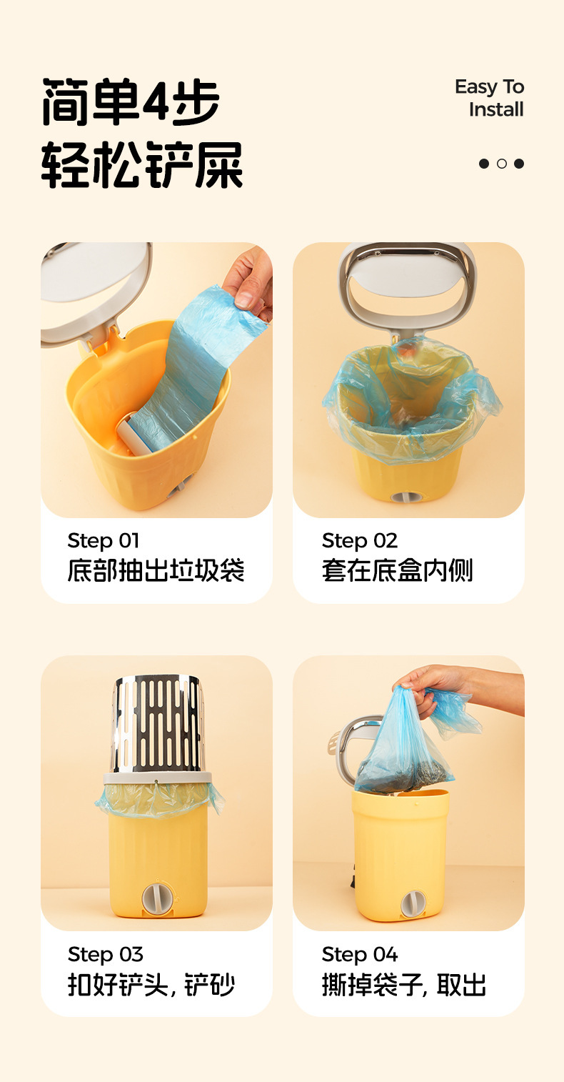 ペット用金属一体型猫砂スコップ、ゴミ袋、掃除道具、取り外し可能な大容量の糞スコップが付属しています。